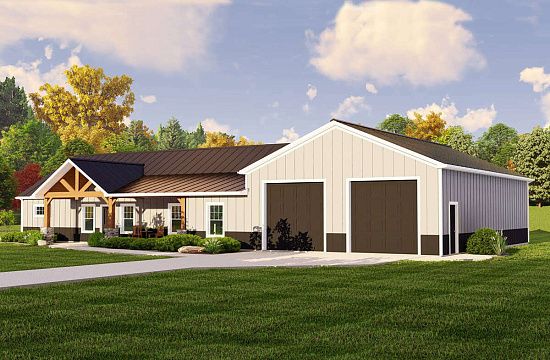 Проект одноэтажного дома с гаражом на три и более машин в стиле Ранчо S5-261 (692-00224)