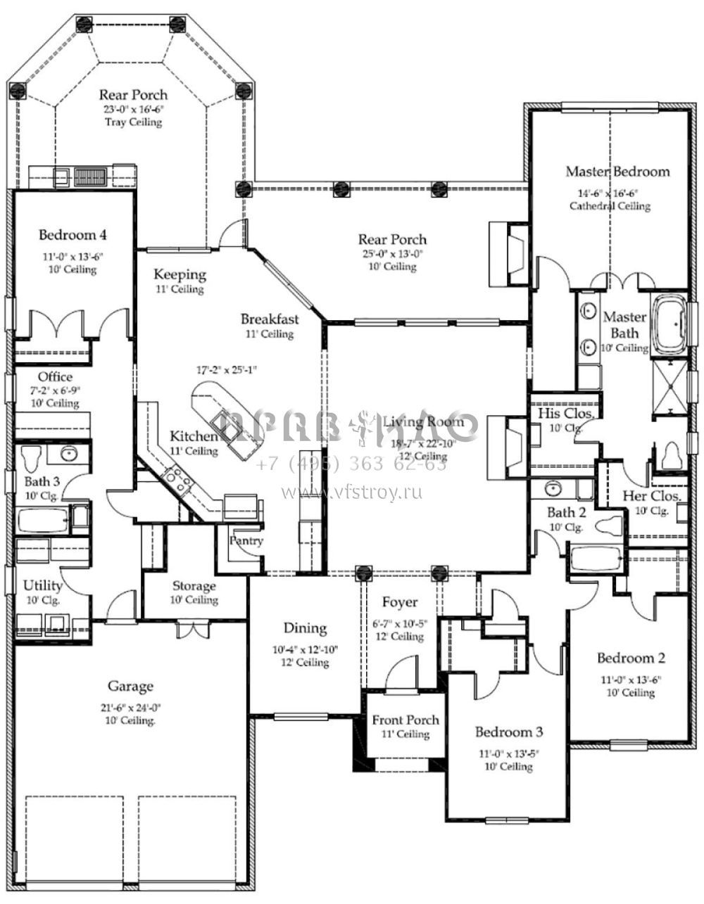 Проект одноэтажного дома с гаражом на две машины в стиле Ранчо S5-261 (7516-00014)