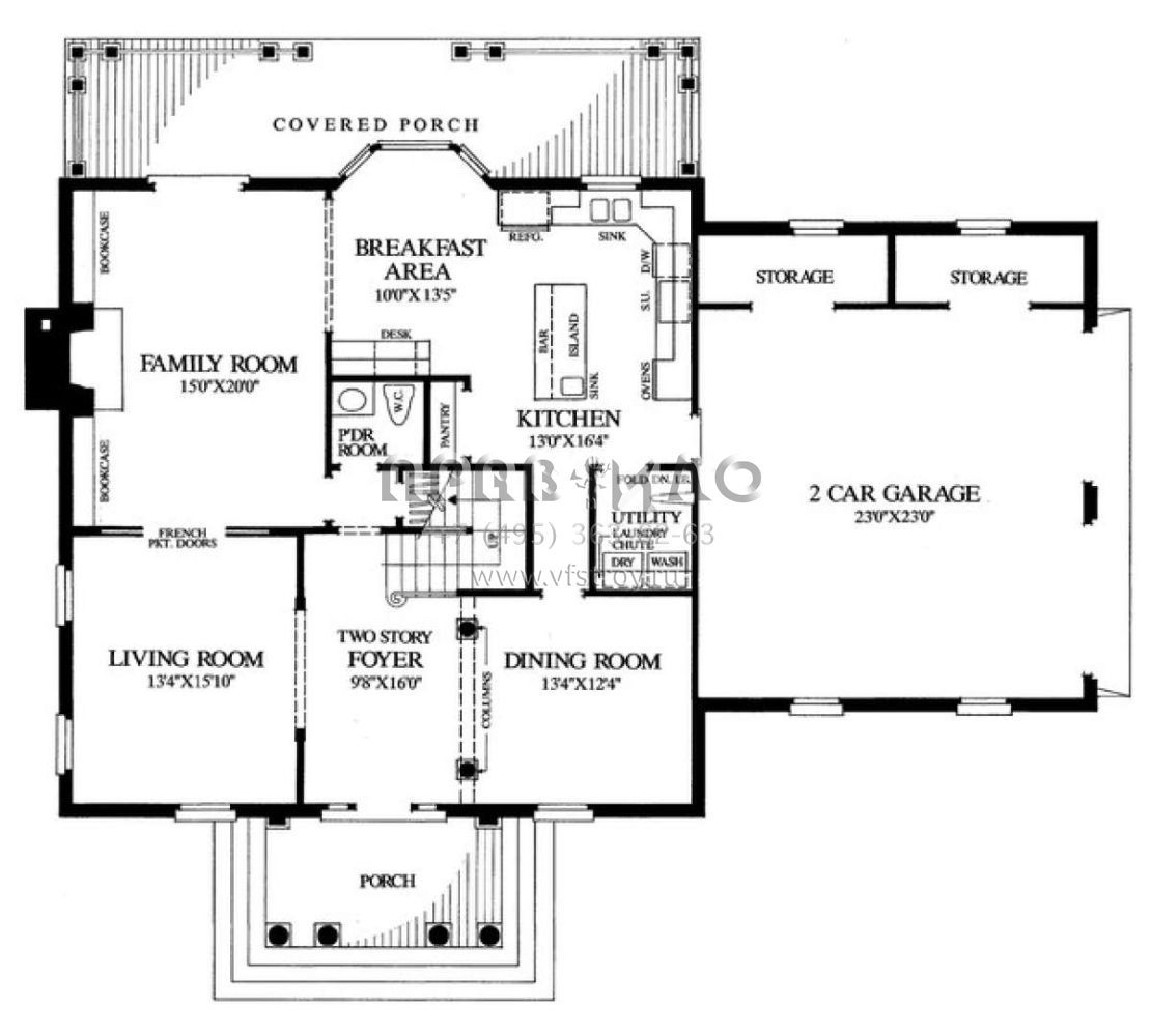 Проект двухэтажного дома с гаражом на две машины в стиле Особняк S5-261 (7922-00110)