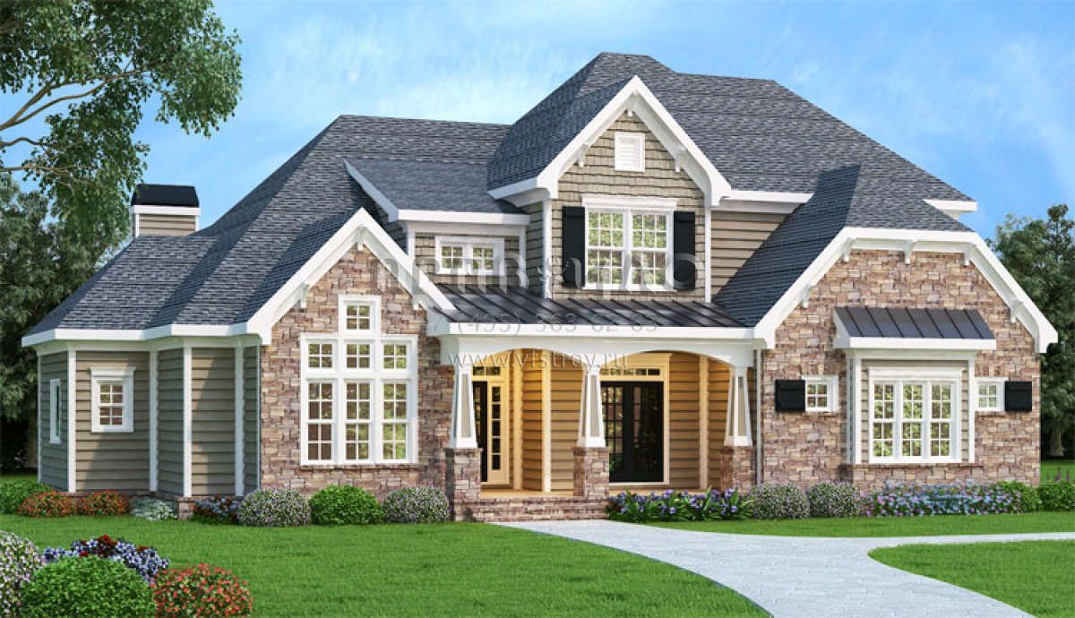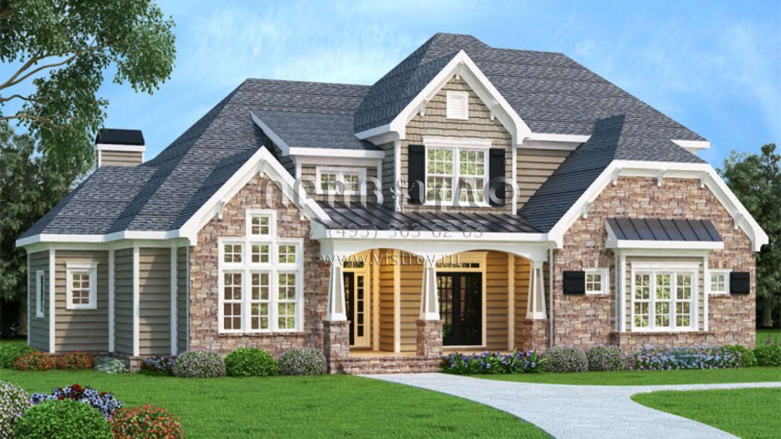 Проект двухэтажного дома с гаражом на две машины в английском стиле S5-262 (009-00253)