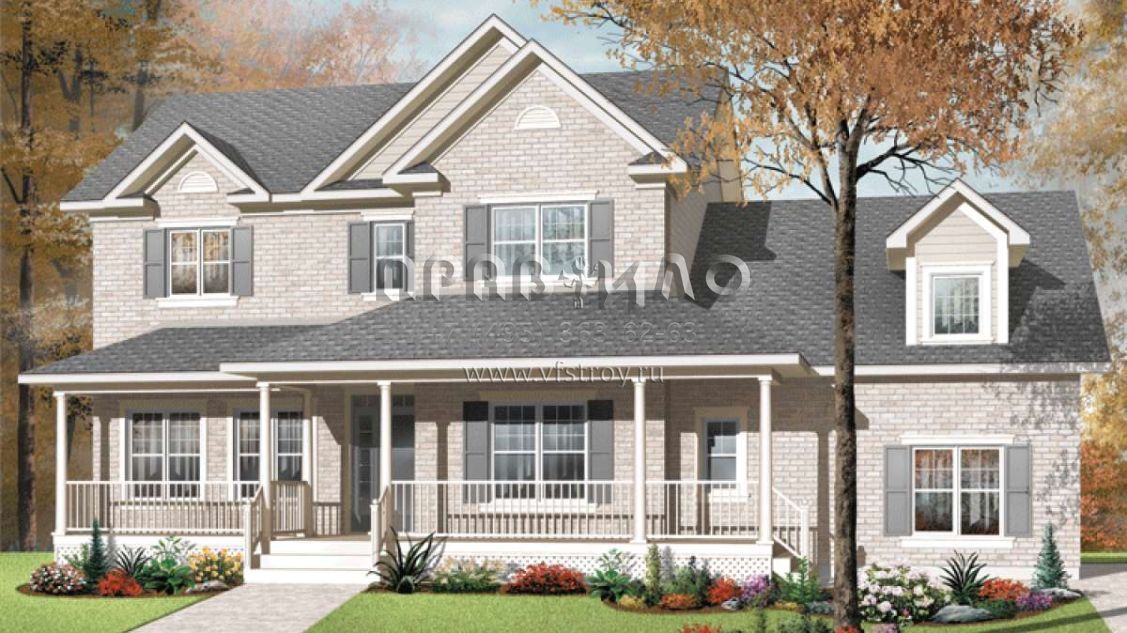 Проект двухэтажного дома с гаражом на две машины в стиле Ранчо S5-262 (034-01029)