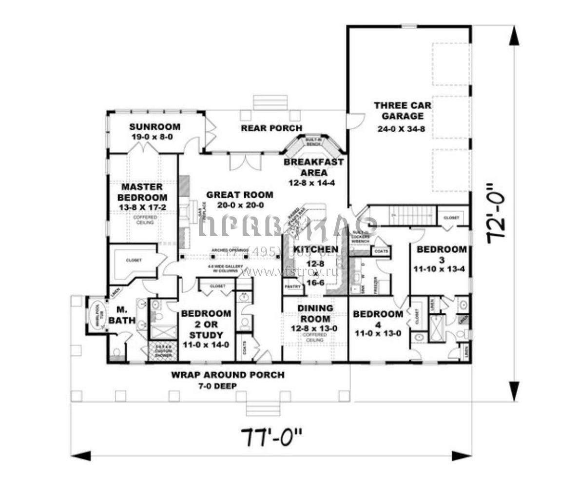 Проект одноэтажного дома с гаражом на три и более машин в американском стиле S5-262 (1776-00086)