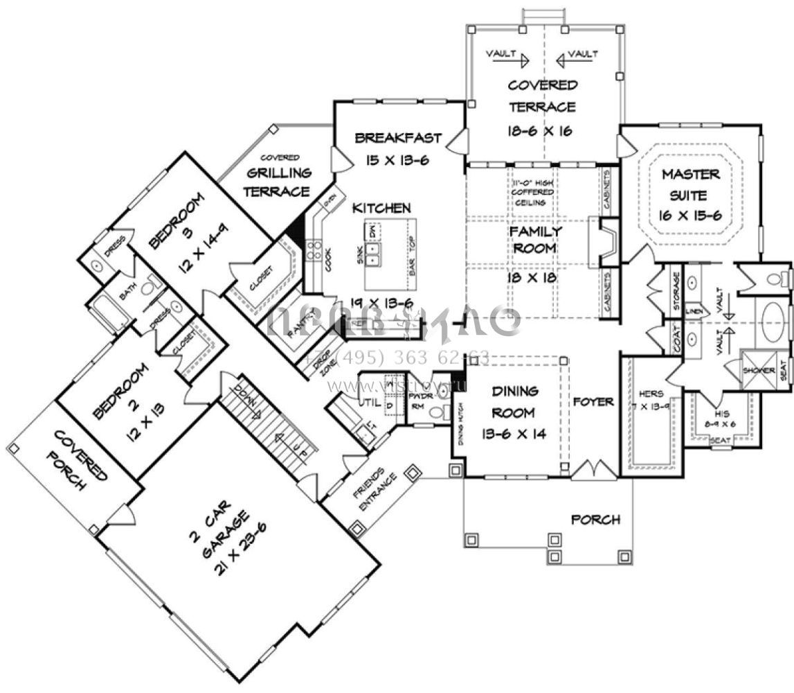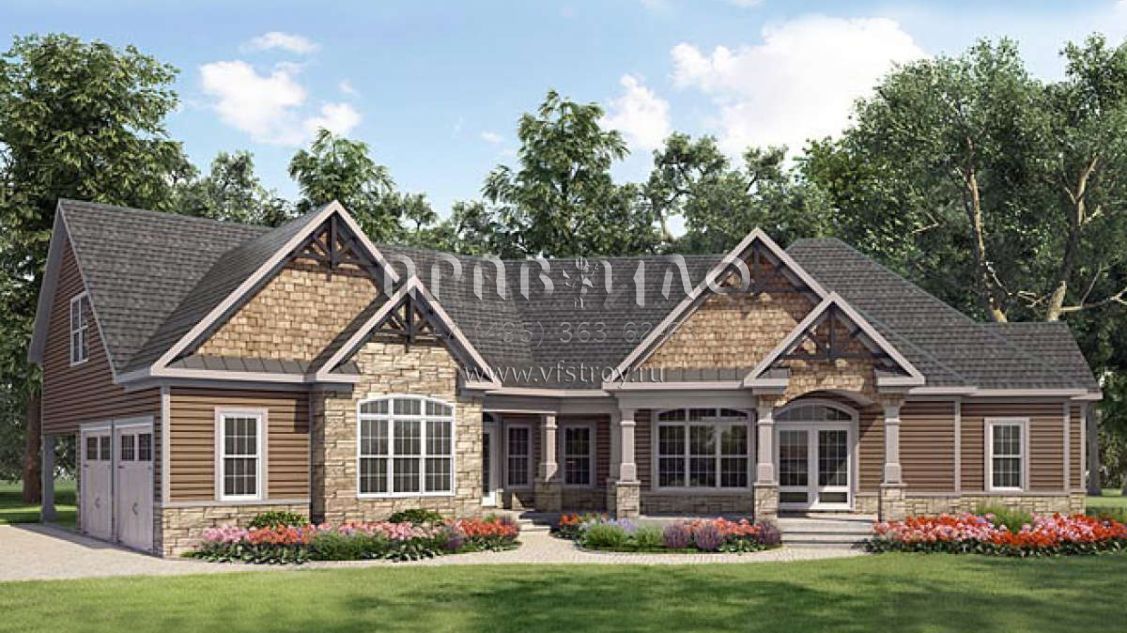 Проект одноэтажного дома с гаражом на две машины в американском стиле S5-262 (6082-00004)
