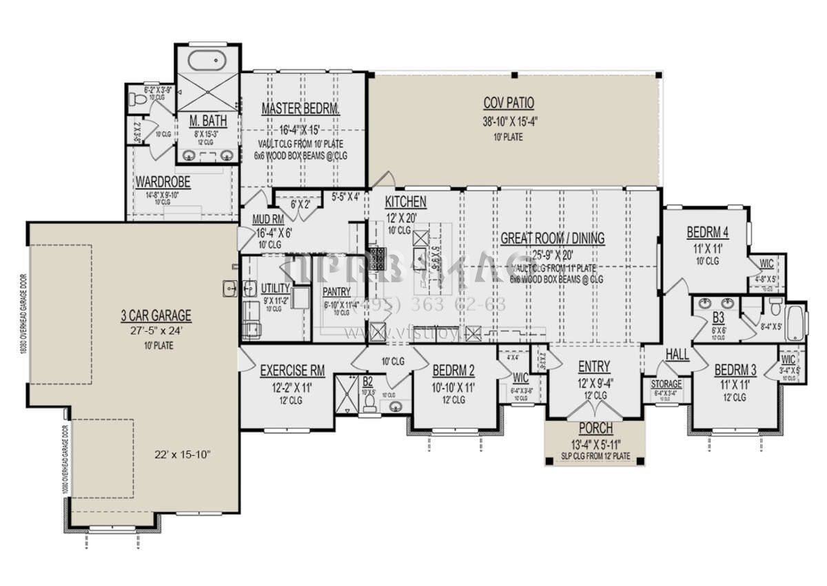 Проект одноэтажного дома с гаражом на три и более машин в современном стиле S5-262 (9300-00007)