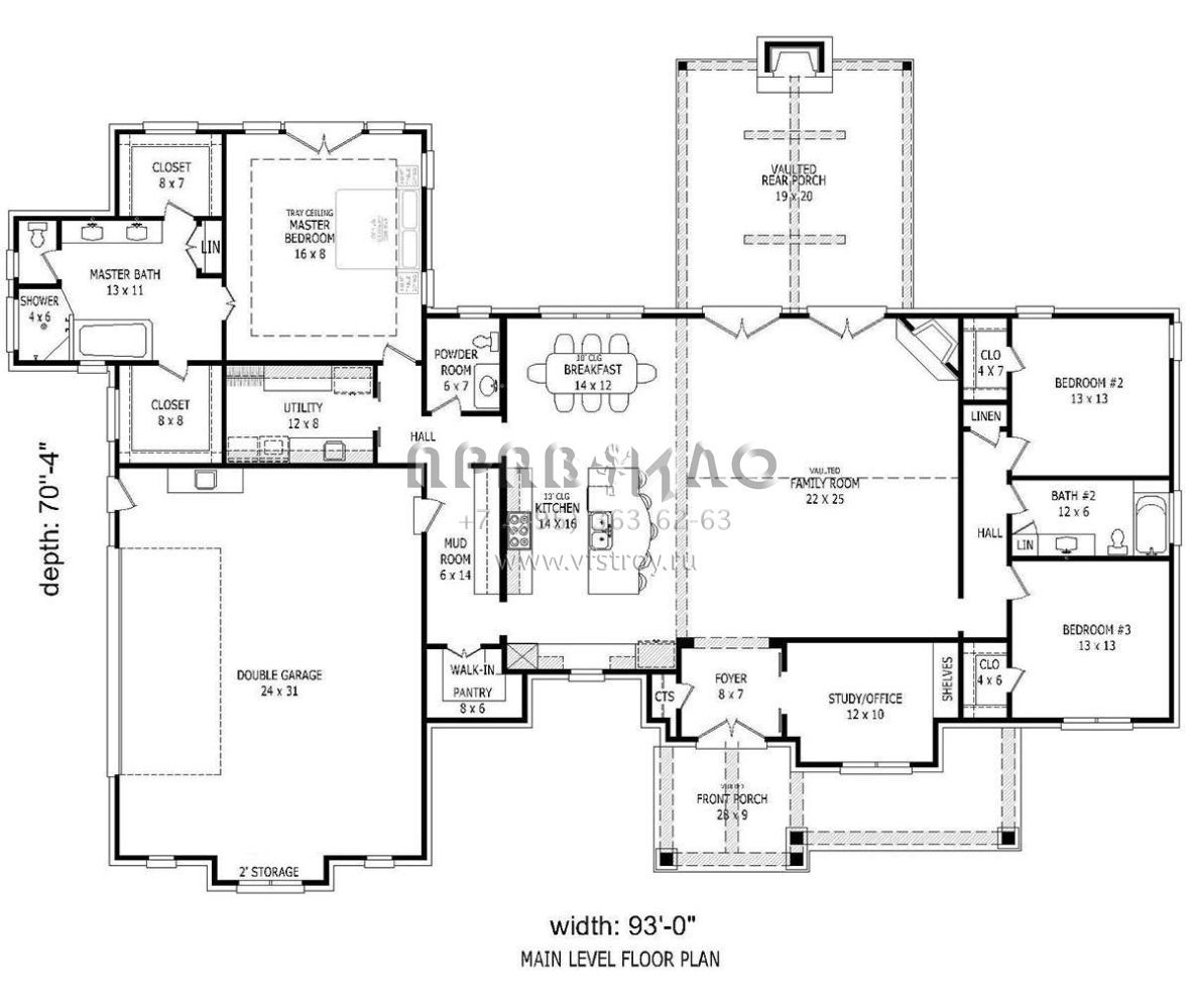 Поскольку этот проект разрабатывался иностранными архитекторами, для строительства дома требуется переработка проекта под действующие в России нормы. Данные визуализации проекта представлены для ознакомления с концепцией проекта. Проект разработан американским архитектурным бюро и представлен America's Best House Plans.