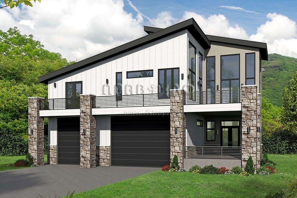 Проект двухэтажного дома с гаражом на три и более машин в современном стиле S5-262 (940-00668)
