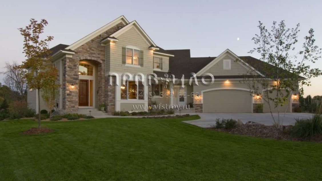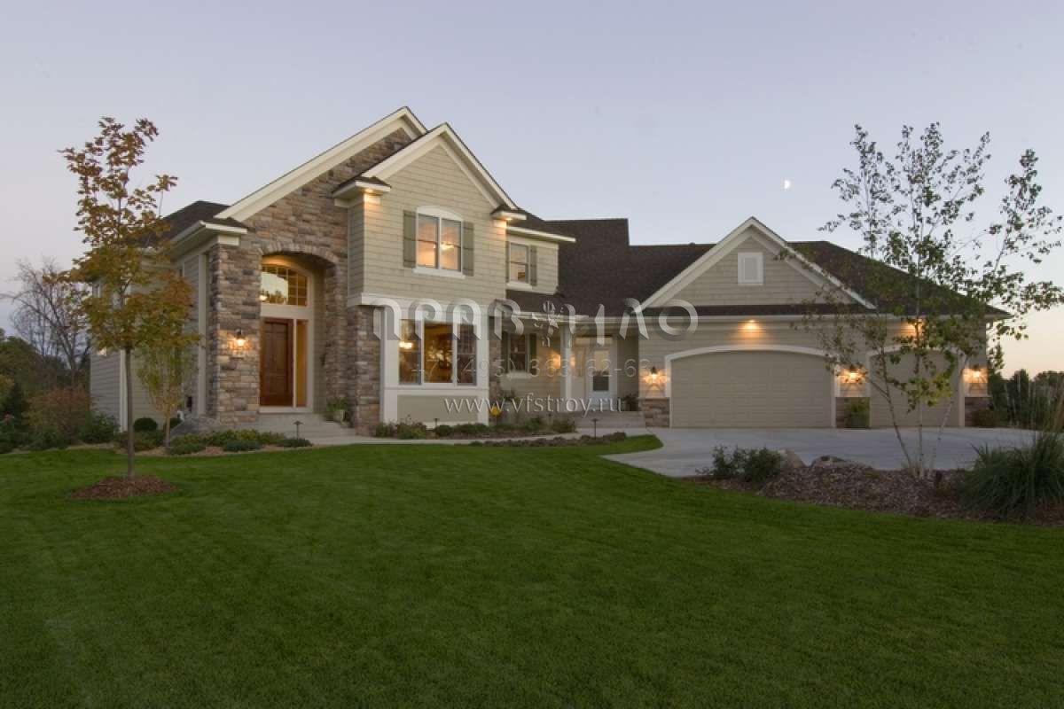 Проект двухэтажного дома с гаражом на три и более машин в стиле Ранчо S5-263 (098-00030)