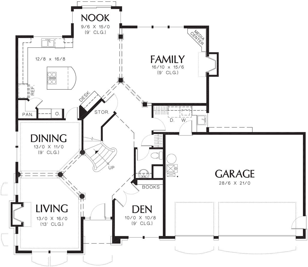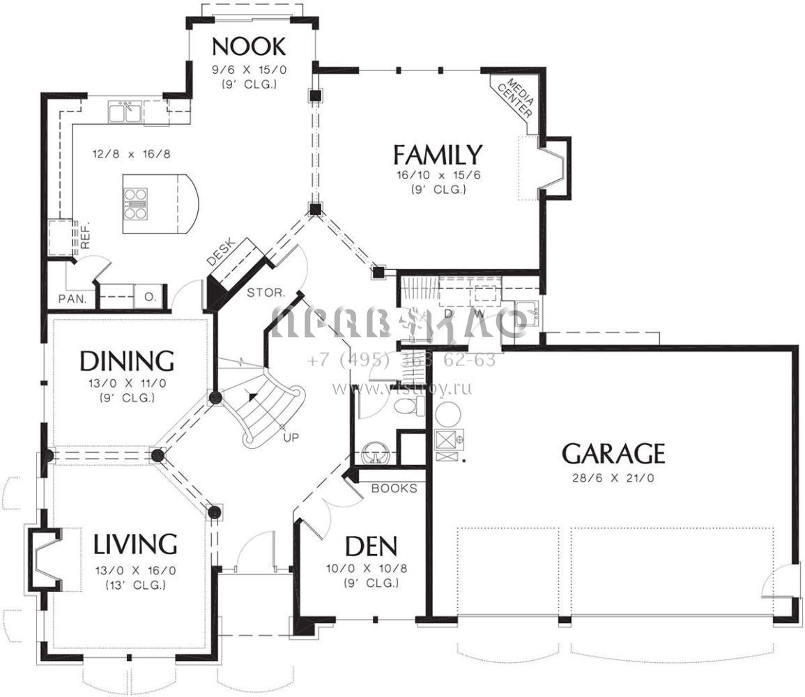 Проект одноэтажного дома с гаражом на три и более машин в стиле Ранчо S5-263 (2559-00308)