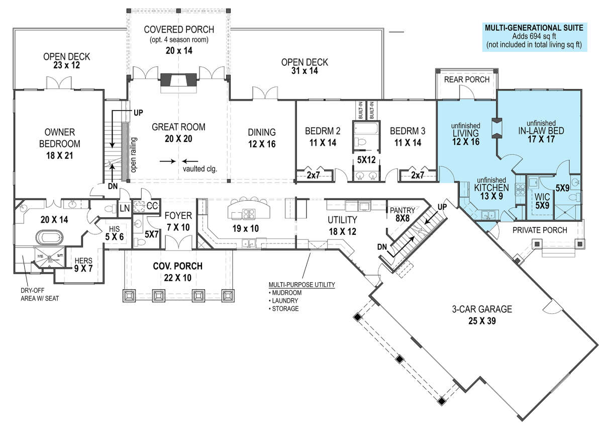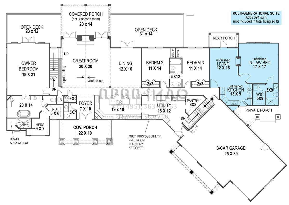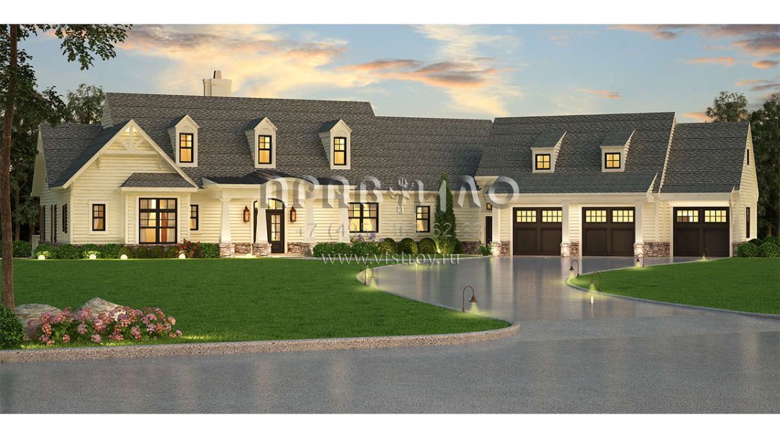 Проект одноэтажного дома с гаражом на три и более машин в американском стиле S5-263 (4195-00011)