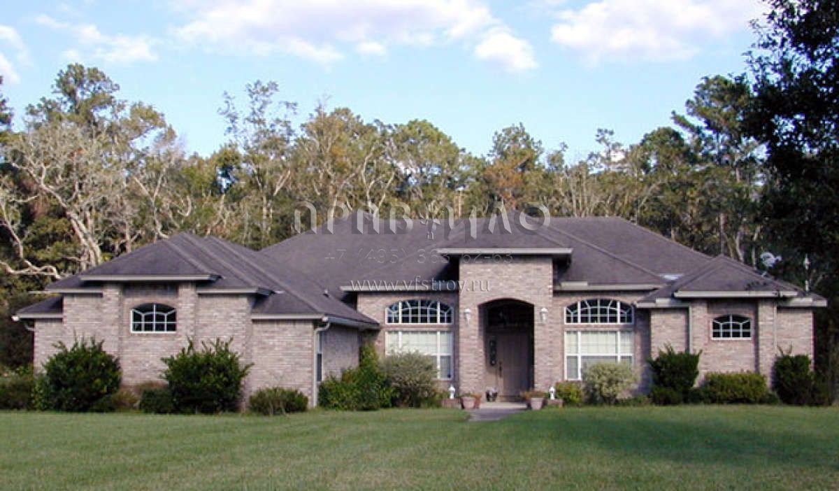 Большая площадь участка позволяет выбрать одноэтажный проект дома, особенно если в семье есть пожилые люди, инвалиды или маленькие дети.