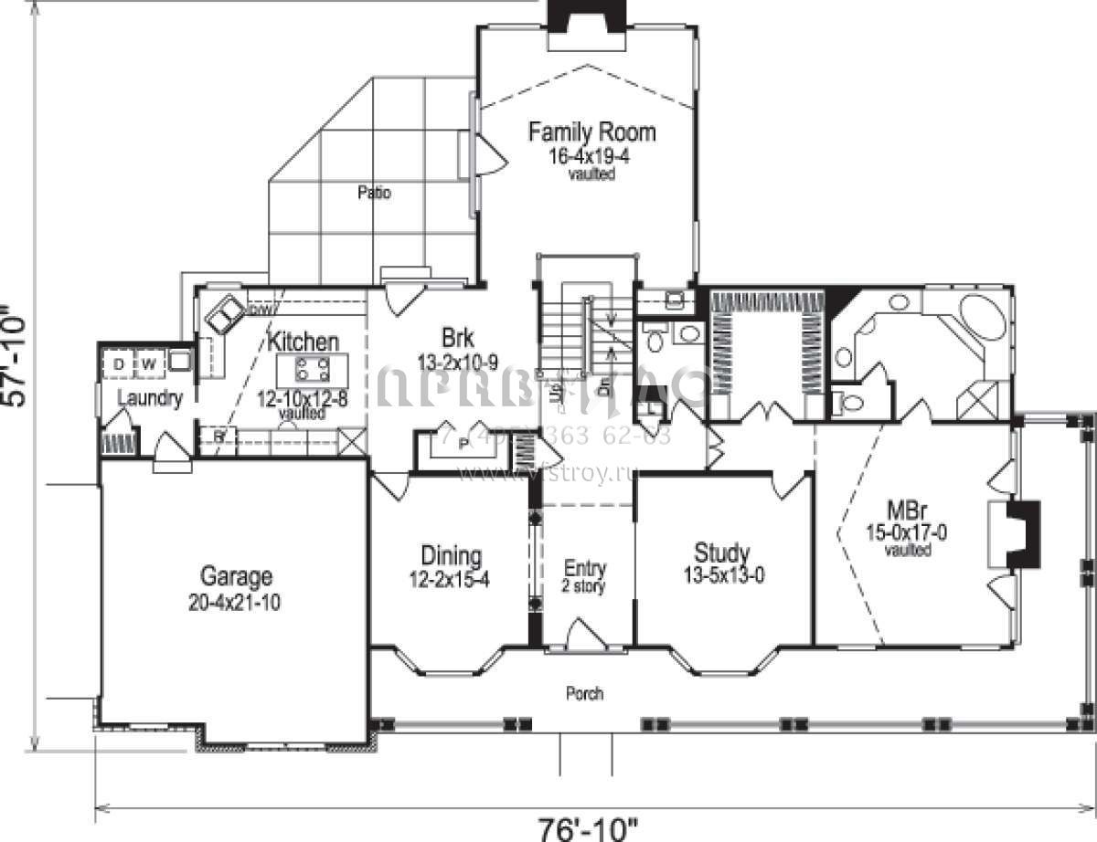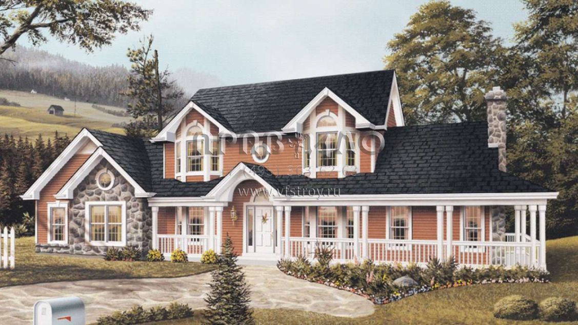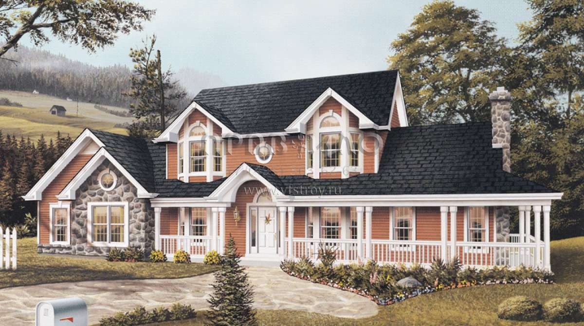Проект двухэтажного дома с гаражом на две машины в стиле Ранчо S5-263 (5633-00039)