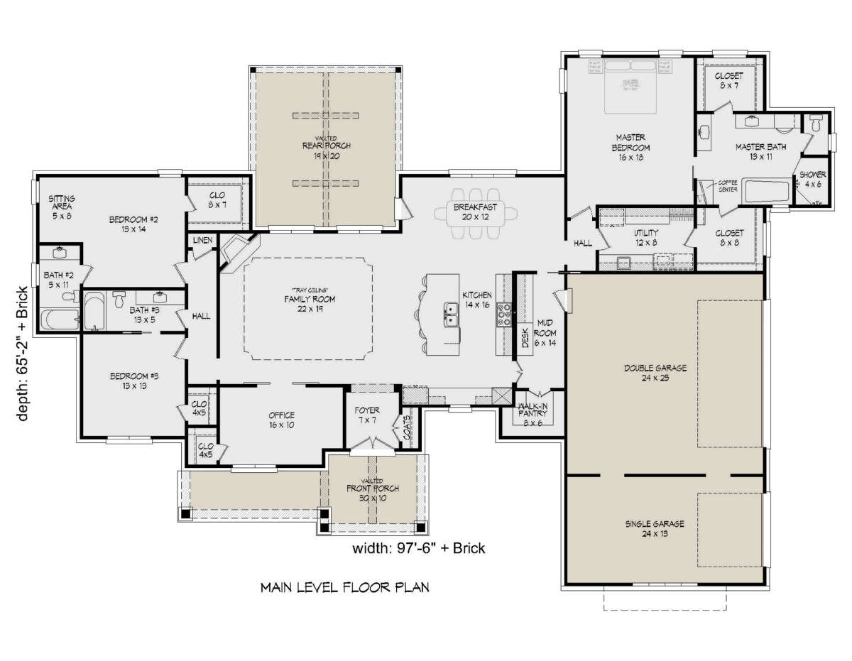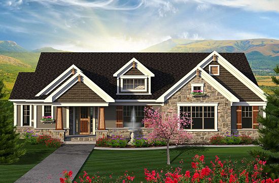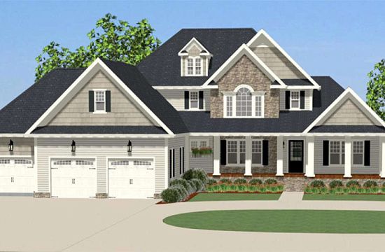 Проект одноэтажного дома с гаражом на три и более машин в американском стиле S5-263 (940-00305)