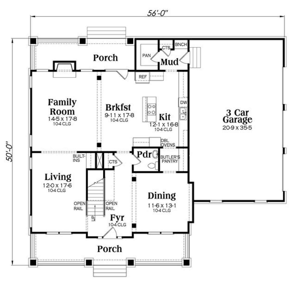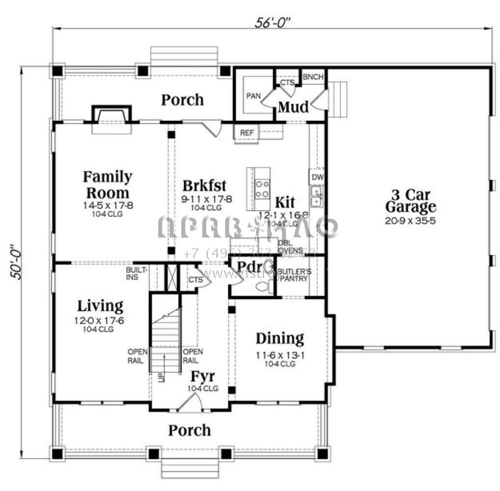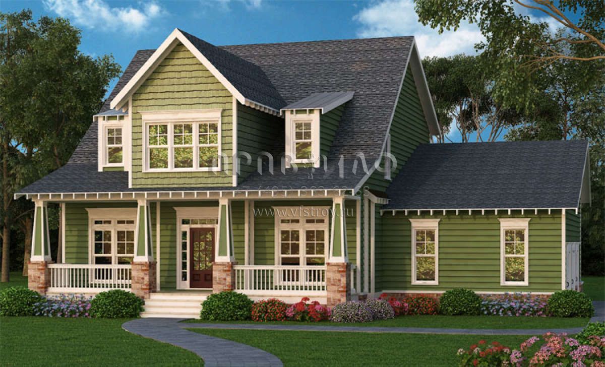 Проект двухэтажного дома с гаражом на три и более машин в американском стиле S5-264 (009-00235)