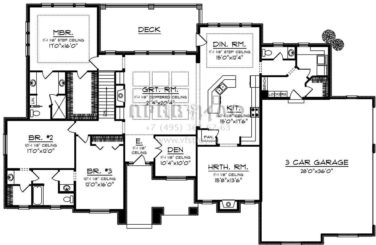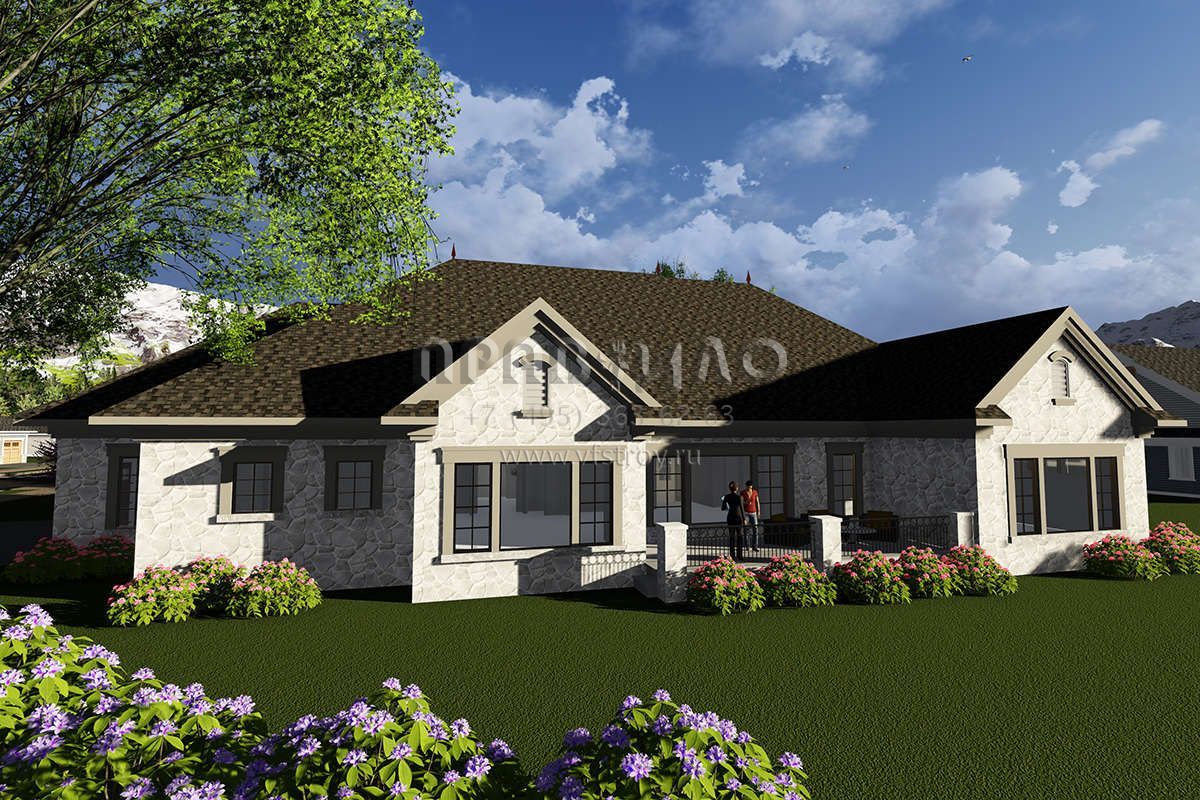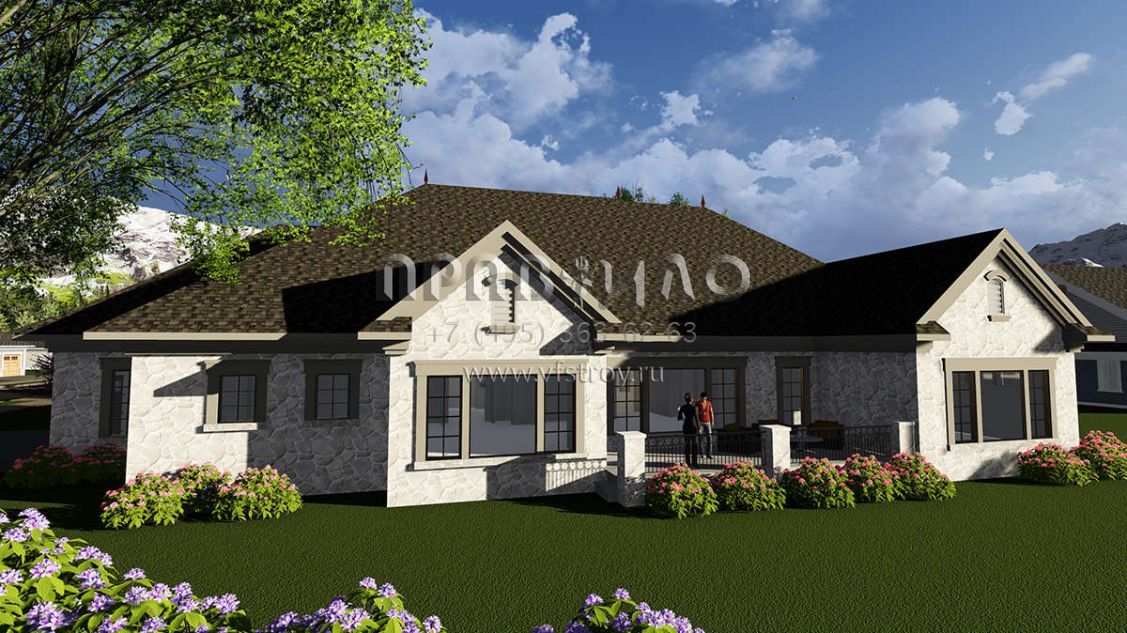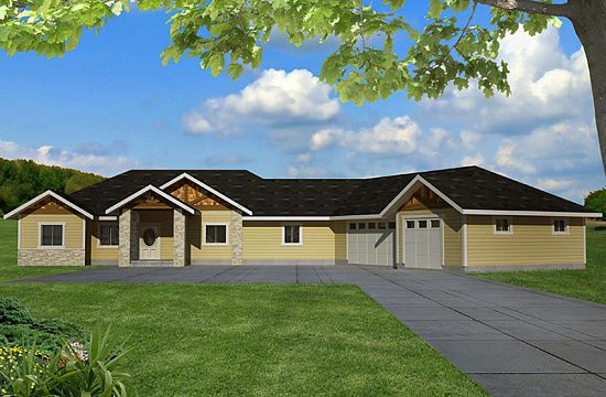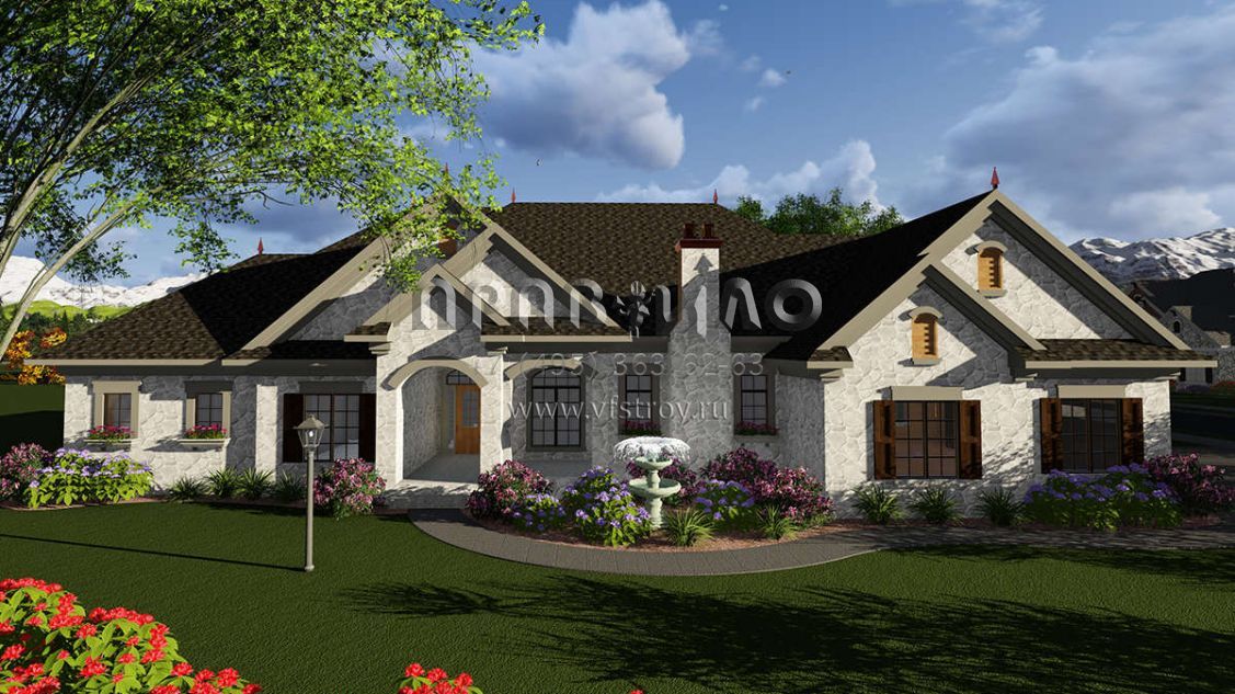 Проект одноэтажного дома с гаражом на три и более машин в английском стиле S5-264 (1020-00071)