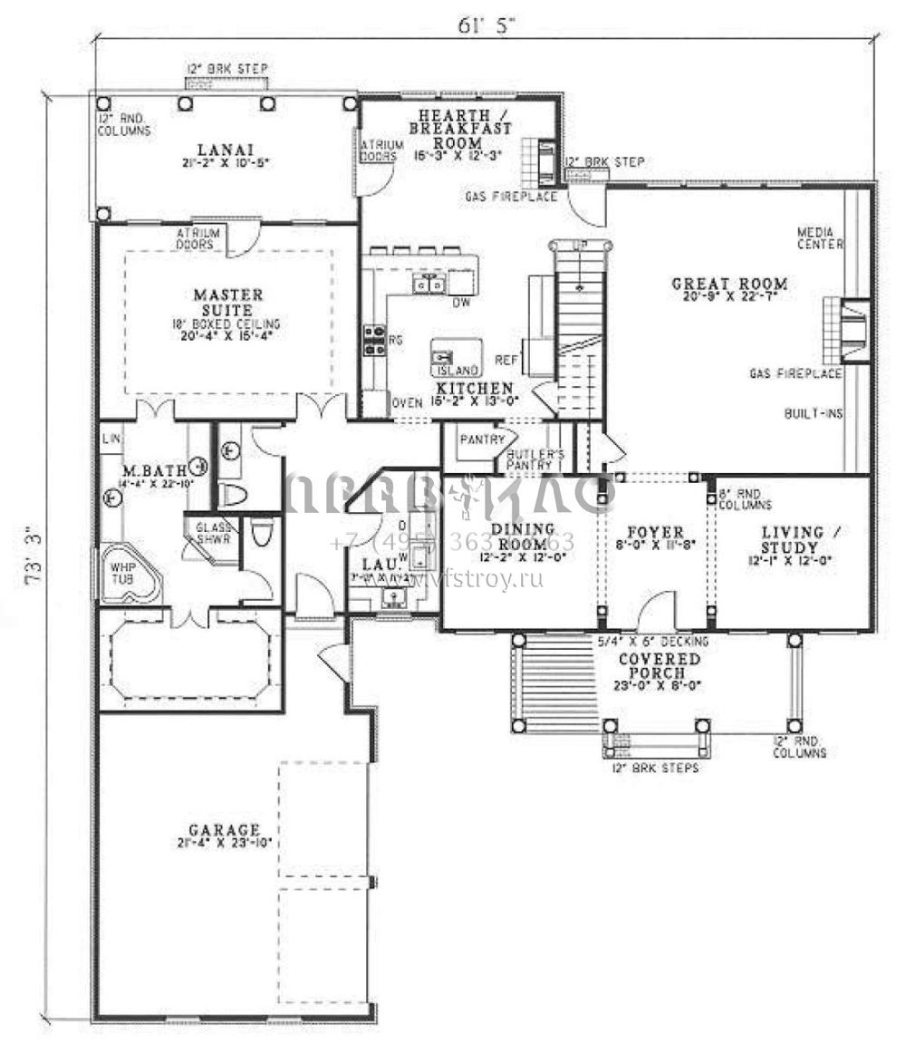 Поскольку этот проект разрабатывался иностранными архитекторами, для строительства дома требуется переработка проекта под действующие в России нормы. Данные визуализации проекта представлены для ознакомления с концепцией проекта. Проект разработан американским архитектурным бюро и представлен America's Best House Plans.