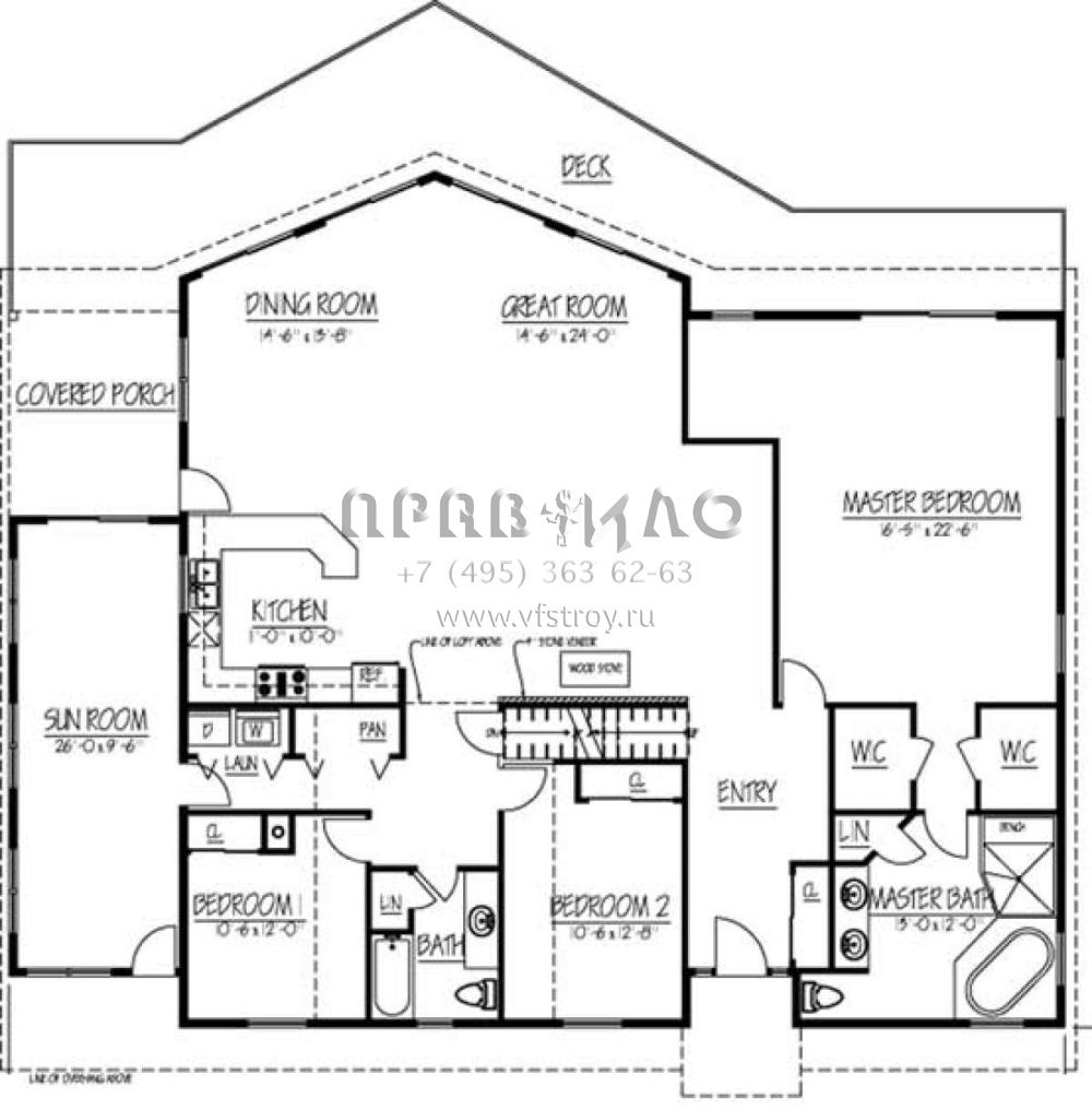 Проект одноэтажного дома без гаража в стиле Ранчо S5-264 (1754-00030)