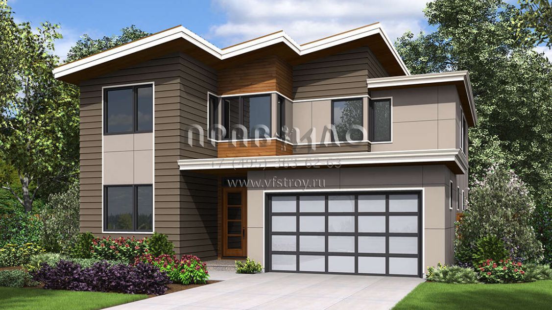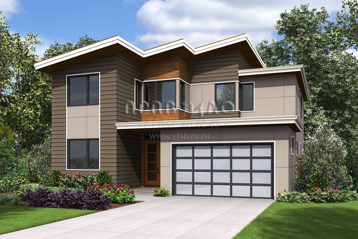 Проект двухэтажного дома с гаражом на две машины в современном стиле S5-264 (2559-00891)