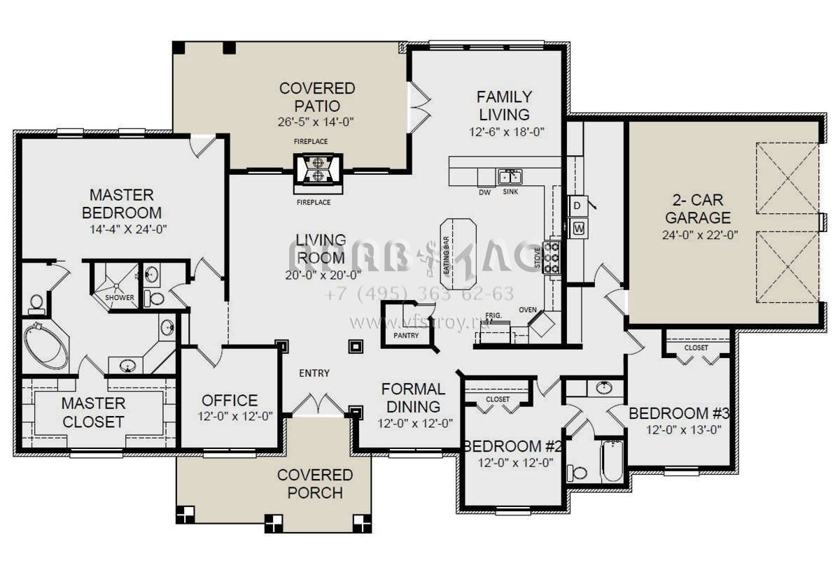 Проект одноэтажного дома с гаражом на две машины в американском стиле S5-264 (3558-00008)