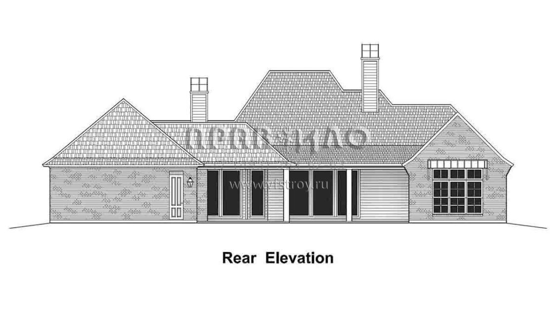 Проект одноэтажного дома с гаражом на три и более машин в стиле Ранчо S5-264 (7516-00032)