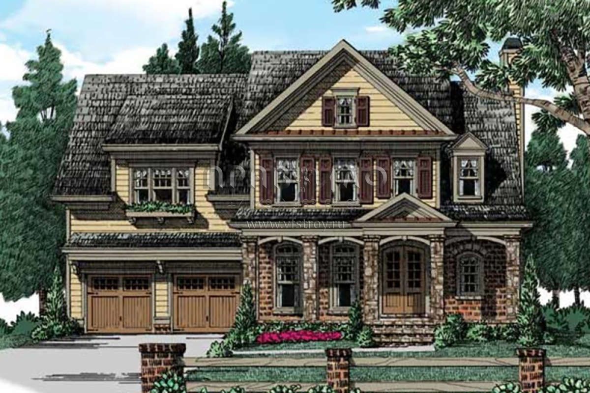 Проект двухэтажного дома с гаражом на две машины в стиле Ранчо S5-264 (8594-00200)