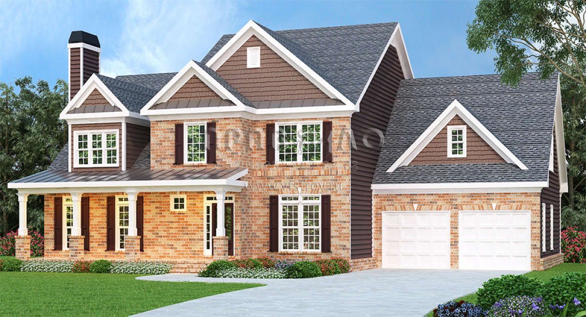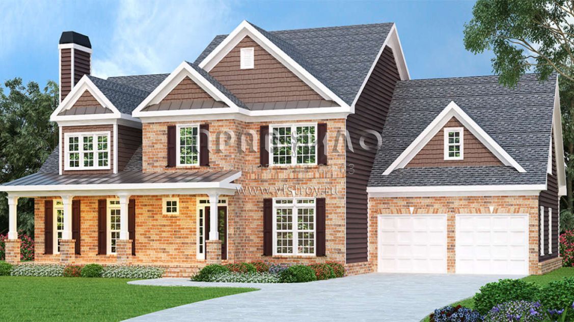 Проект двухэтажного дома с гаражом на две машины в стиле Ранчо S5-265 (009-00009)