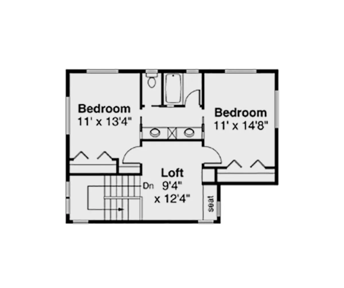 Двухэтажный проект дома позволяет рационально распорядиться площадью участка небольшого размера или узкой формы. На первом этаже находятся общие комнаты (гостиная/столовая, кухня, подсобные и технические помещения), на втором — спальни членов семьи.