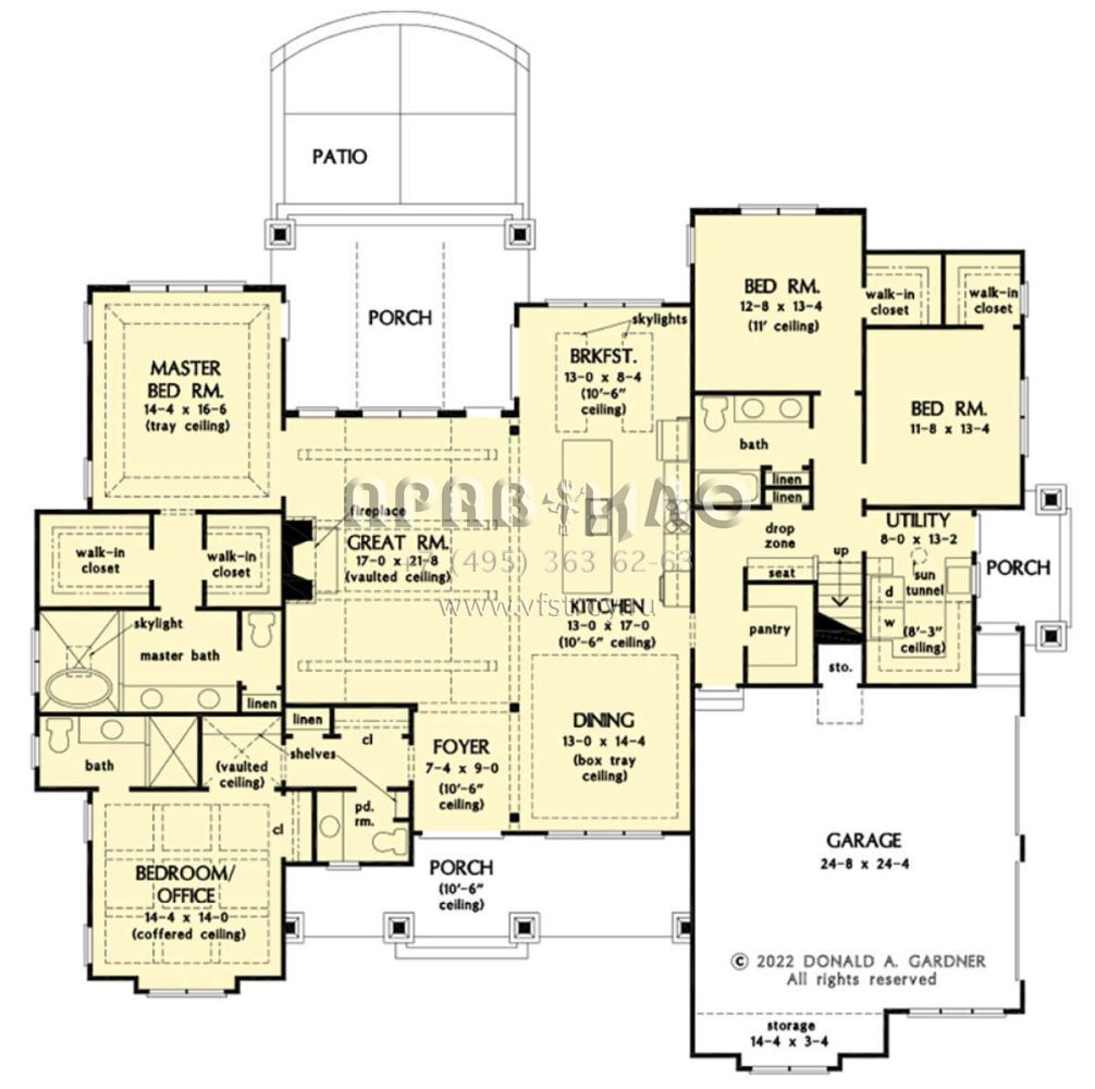 Поскольку этот проект разрабатывался иностранными архитекторами, для строительства дома требуется переработка проекта под действующие в России нормы. Данные визуализации проекта представлены для ознакомления с концепцией проекта. Проект разработан американским архитектурным бюро и представлен America's Best House Plans.