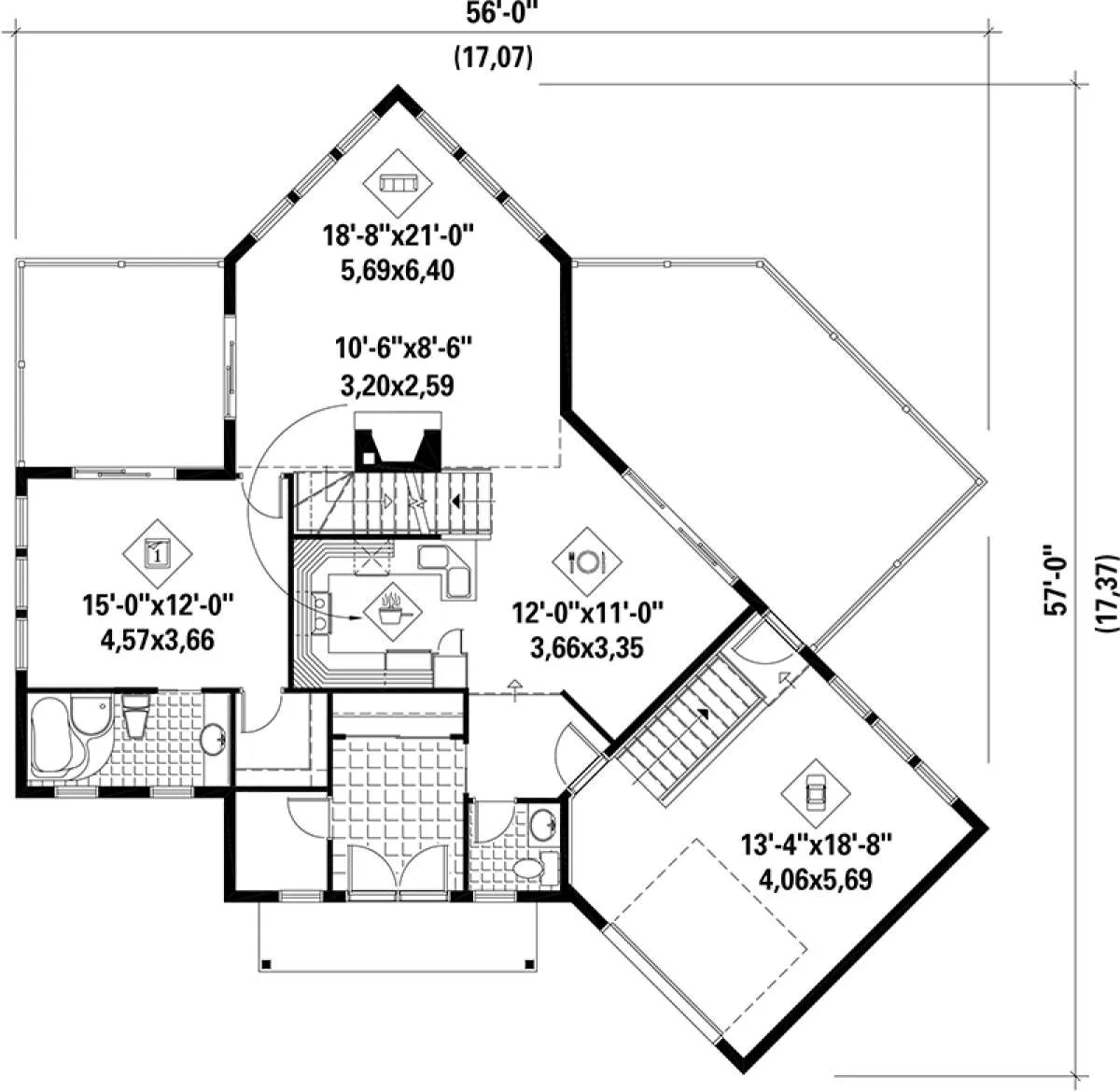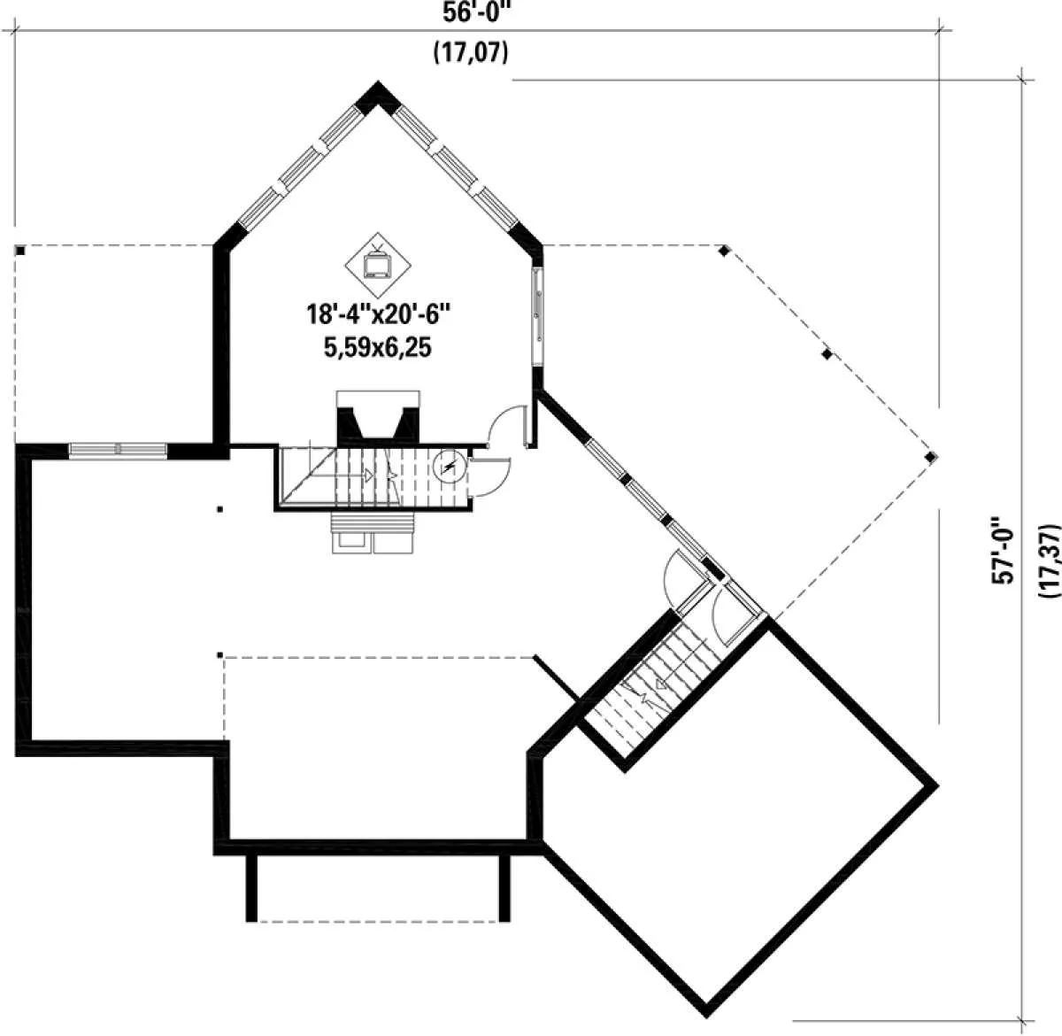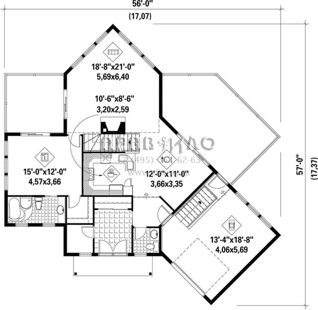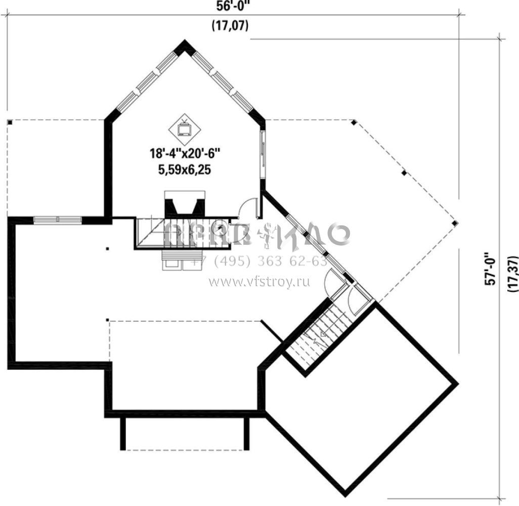 S5-265 (6146-00119) Это иностранный проект, для которого требуется адаптация под нормы, действующие в Российской Федерации. Вы видите проект дома в стиле Шале. В этом доме сочетаются черты сельской постройки и аскетичность лофта. Внутри жильцы смогут проводить время с максимальным комфортом. Обратим внимание, что сейчас на планировках все размеры представлены в футах. Для перевода в метры вам необходимо значение в футах умножить на 0,3048.