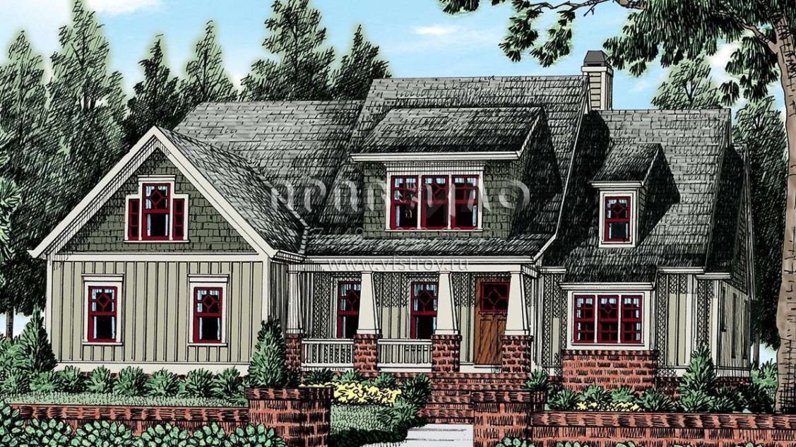 Проект двухэтажного дома с гаражом на две машины в американском стиле S5-265 (8594-00052)