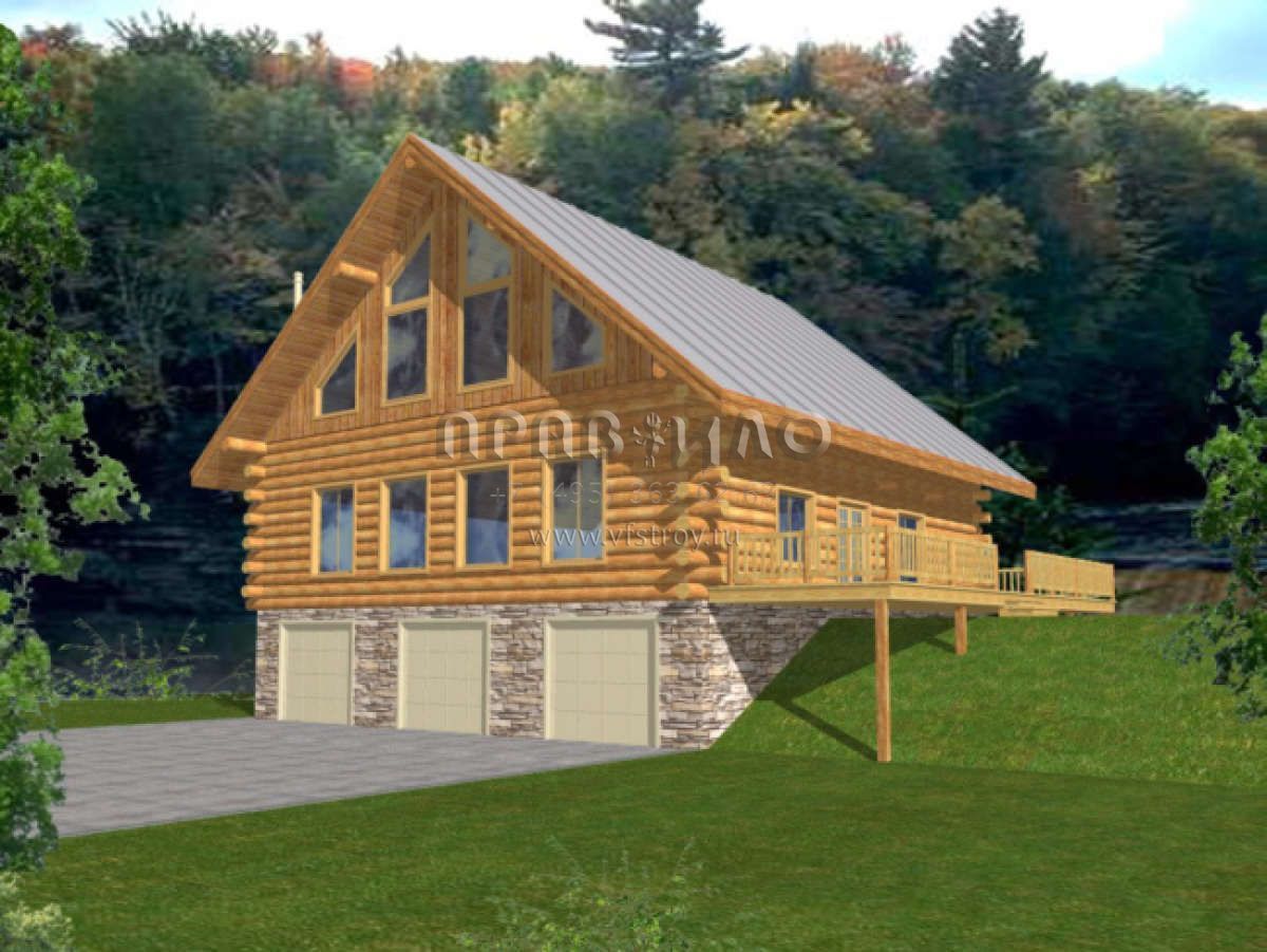 Проект двухэтажного дома с гаражом на три и более машин в русском стиле S5-266 (039-00052)