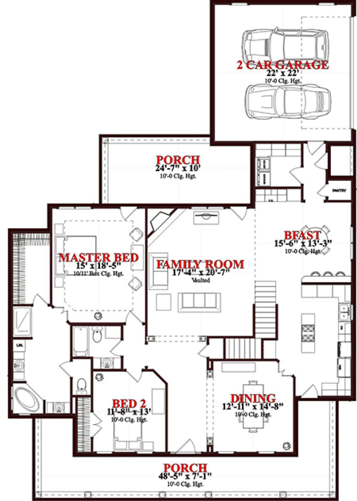 Проект двухэтажного дома с гаражом на две машины в стиле Ранчо S5-266 (1070-00214)