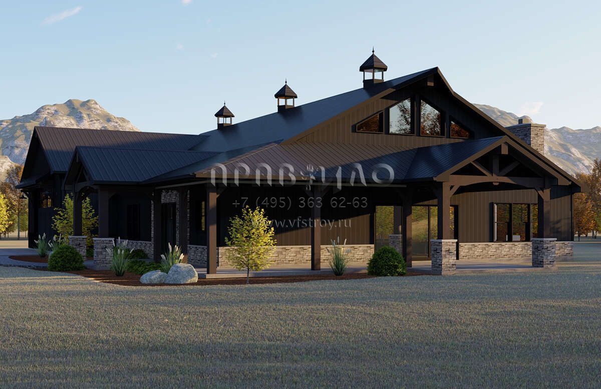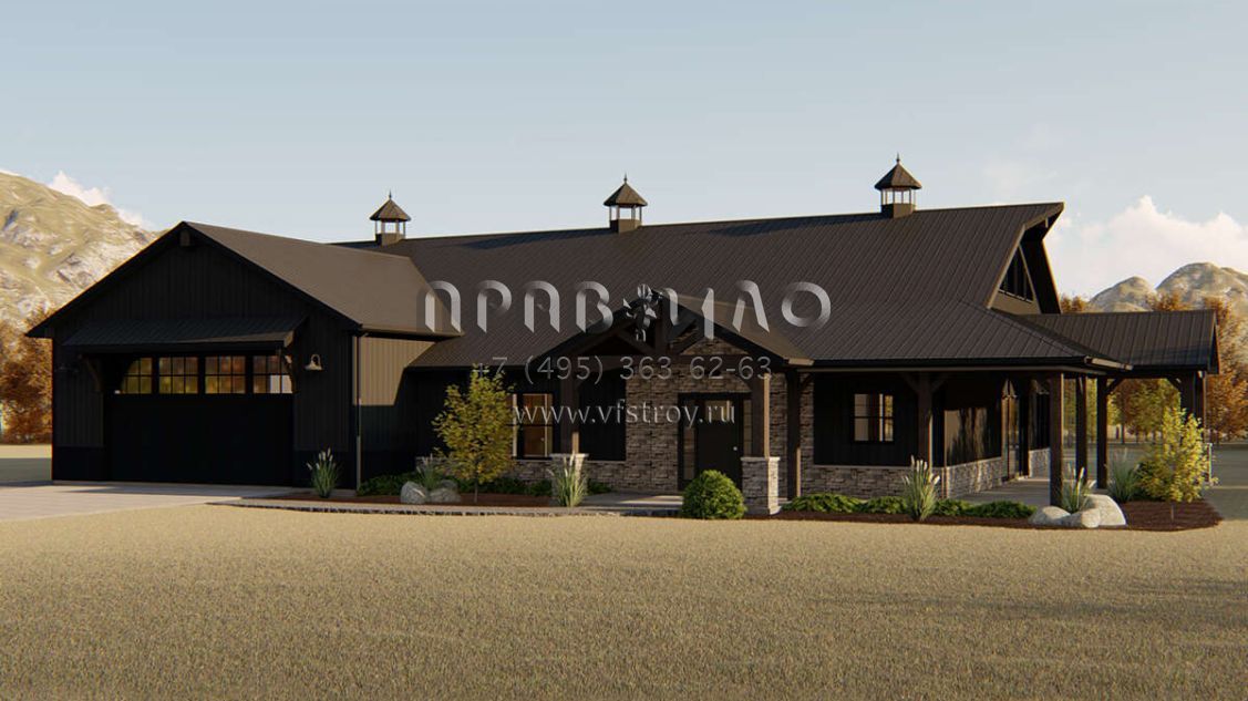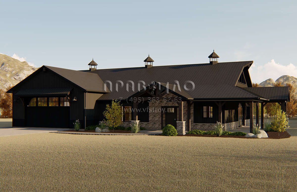 Проект одноэтажного дома с гаражом на две машины в стиле БарнХаус S5-266 (5032-00141)