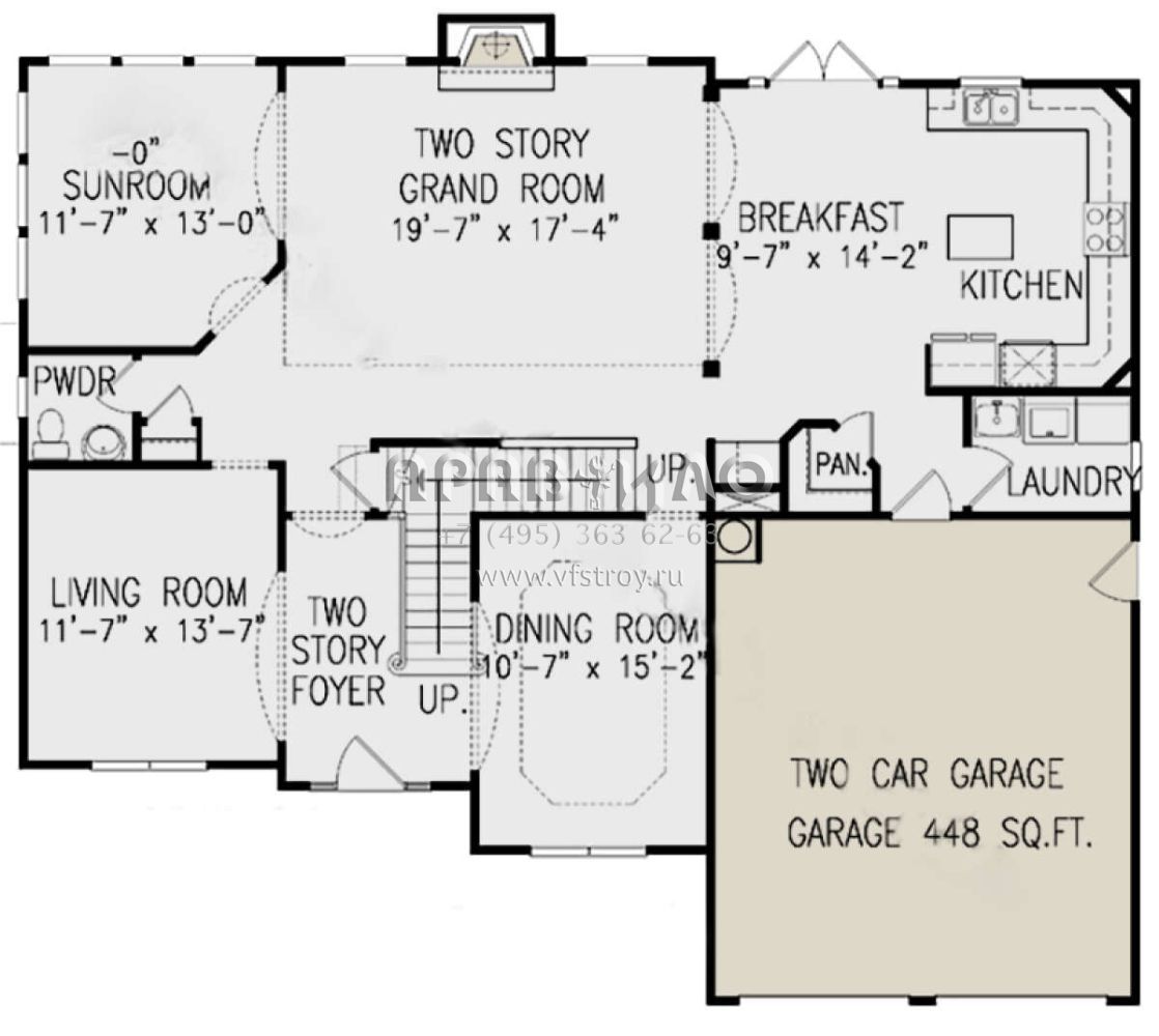 Проект двухэтажного дома с гаражом на две машины в стиле Ранчо S5-266 (699-00330)