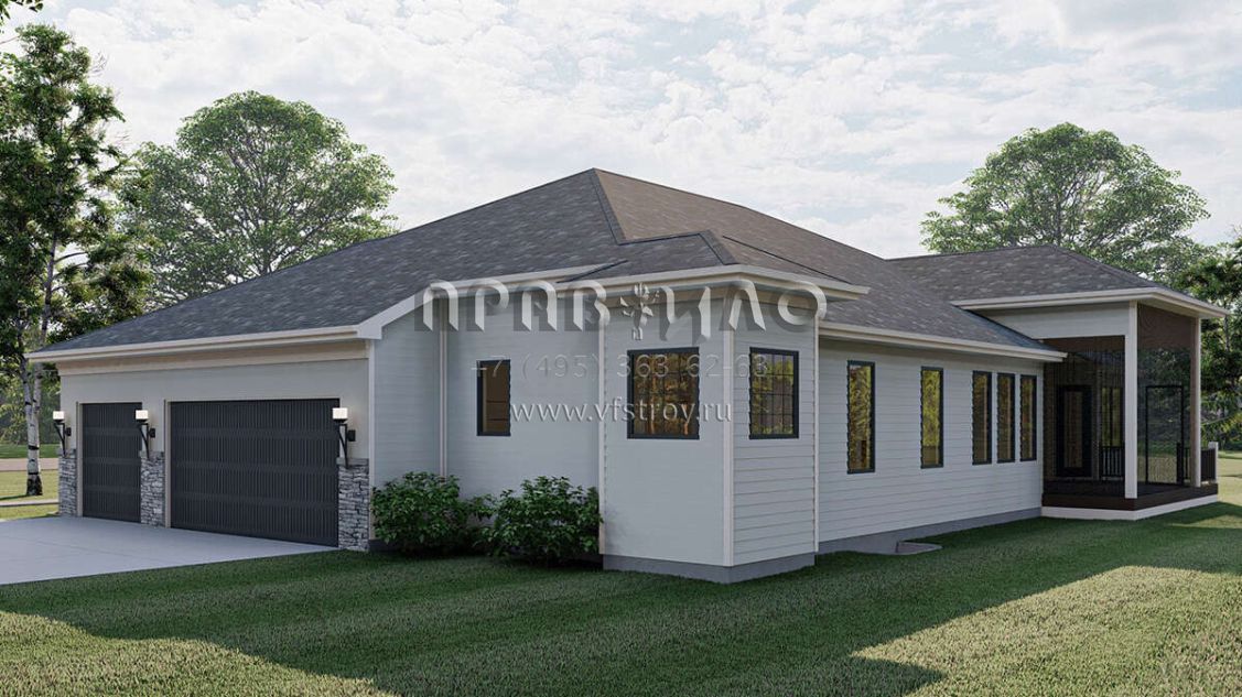 Проект одноэтажного дома с гаражом на три и более машин в стиле Ранчо S5-266 (963-00006)