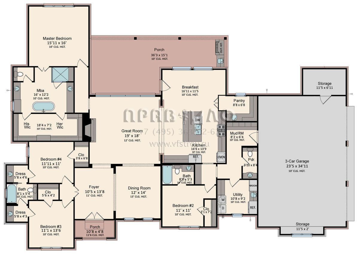 Проект одноэтажного дома с гаражом на три и более машин в английском стиле S5-267 (5995-00014)