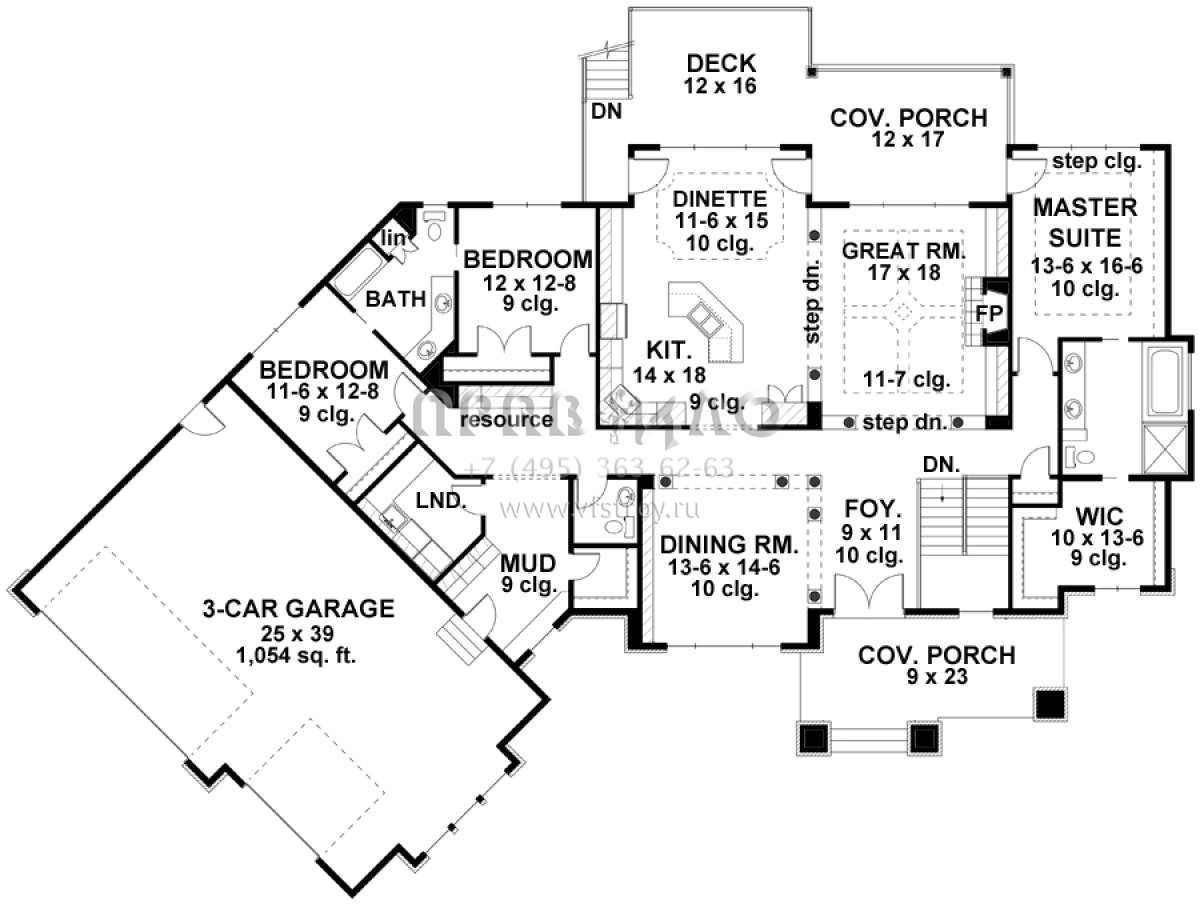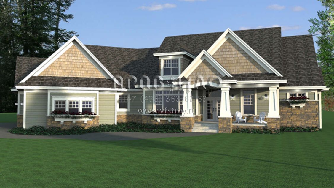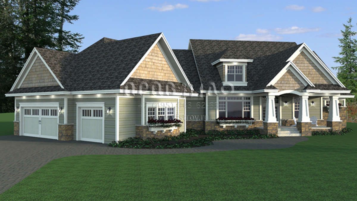Проект одноэтажного дома с гаражом на три и более машин в американском стиле S5-268 (098-00279)