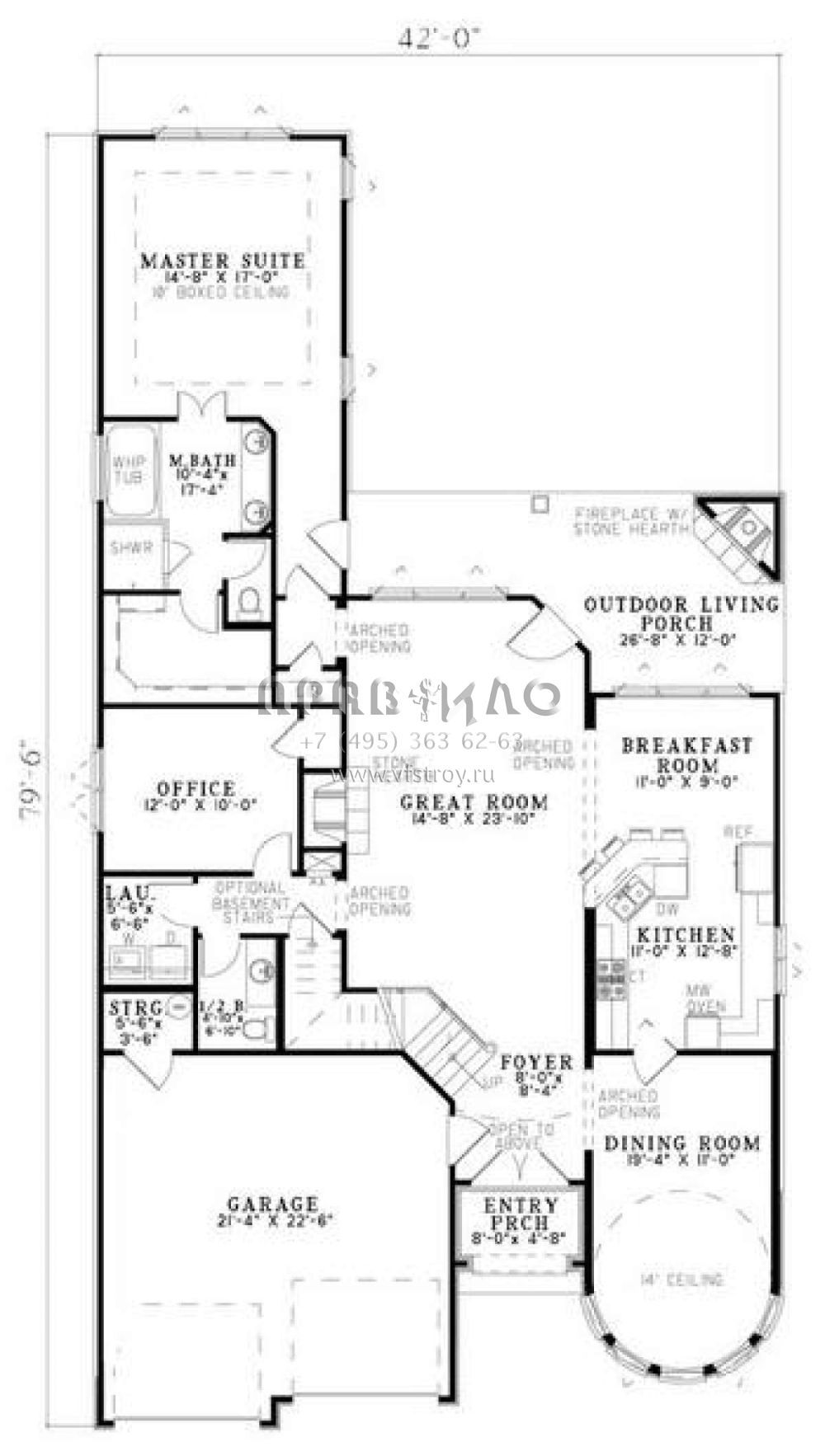 S5-268 (110-00810) Это иностранный проект, для которого требуется адаптация под нормы, действующие в Российской Федерации. Вы видите проект дома в стиле Ранчо. В этом доме сочетаются черты сельской постройки и аскетичность лофта. Внутри жильцы смогут проводить время с максимальным комфортом. Обратим внимание, что сейчас на планировках все размеры представлены в футах. Для перевода в метры вам необходимо значение в футах умножить на 0,3048.