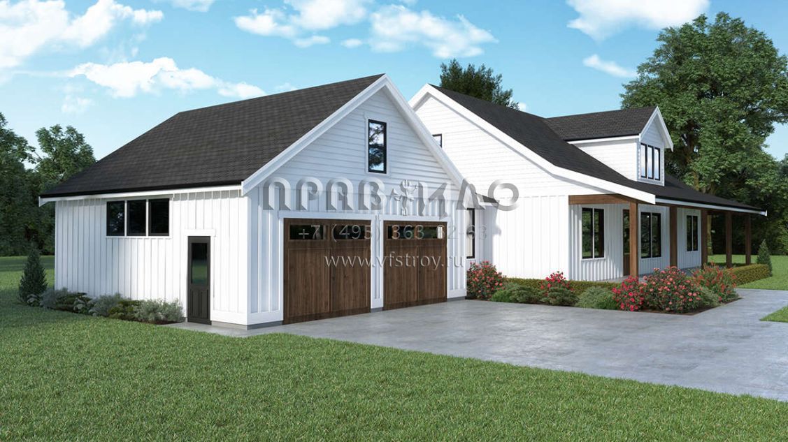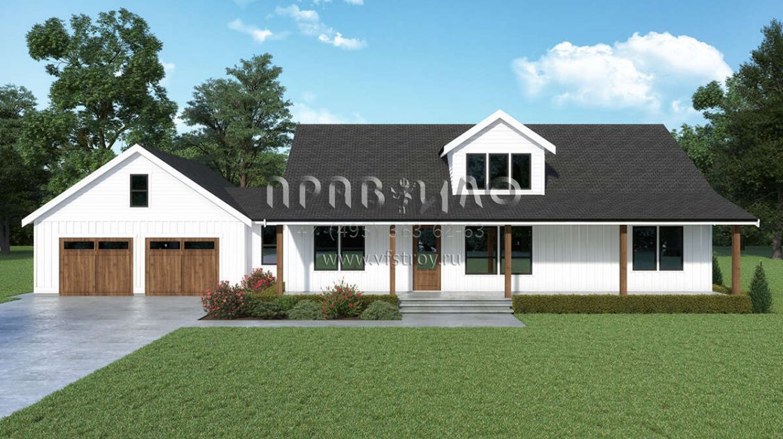 Проект двухэтажного дома с гаражом на две машины в стиле Ранчо S5-268 (2464-00114)