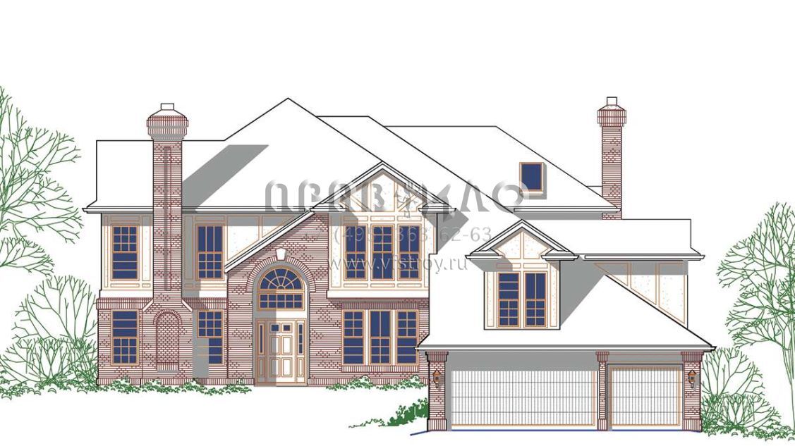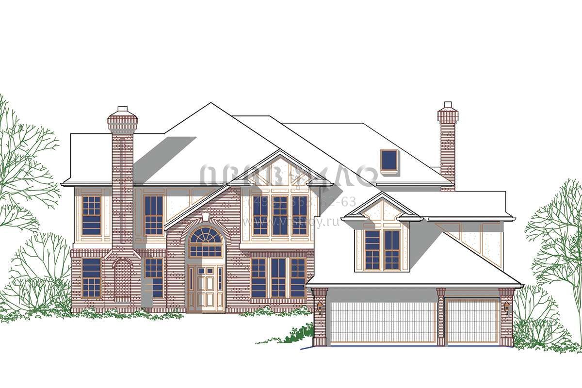 Проект двухэтажного дома с гаражом на три и более машин в английском стиле S5-268 (2559-00435)