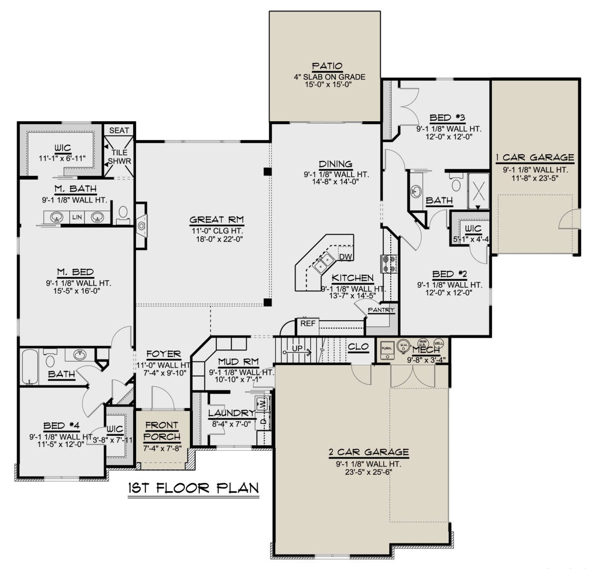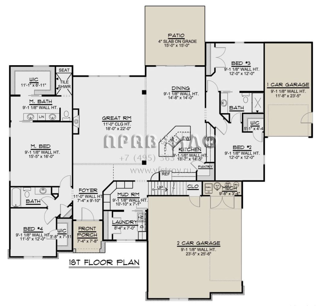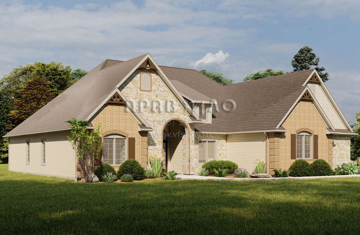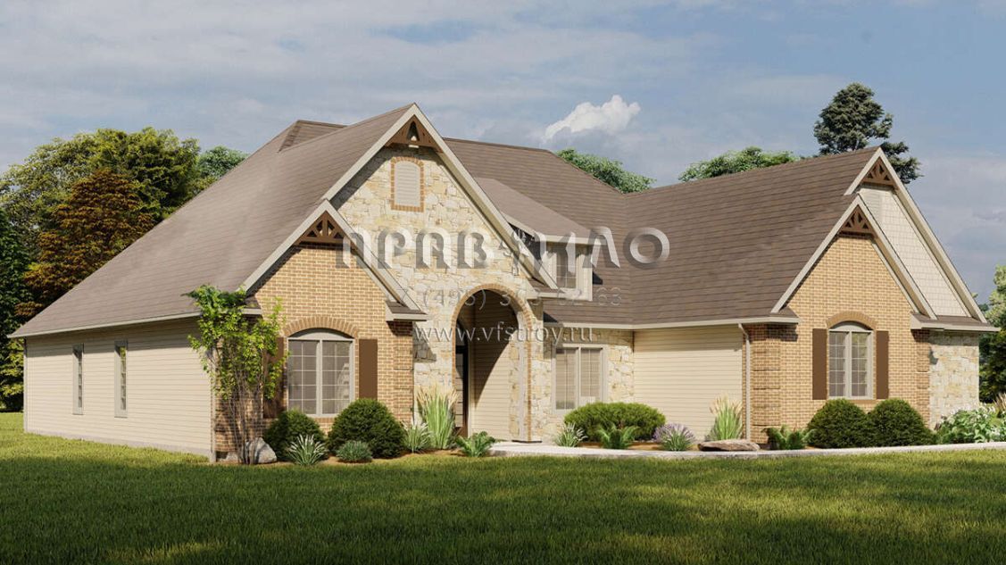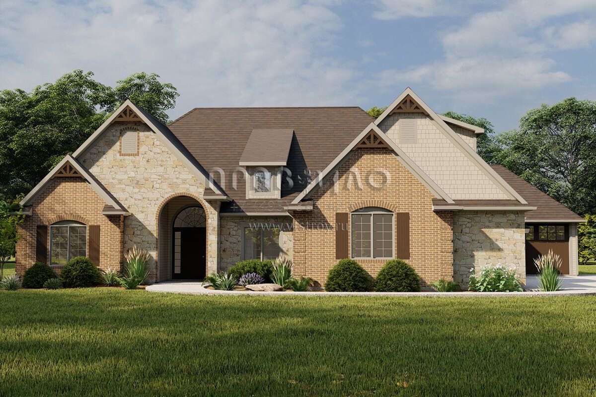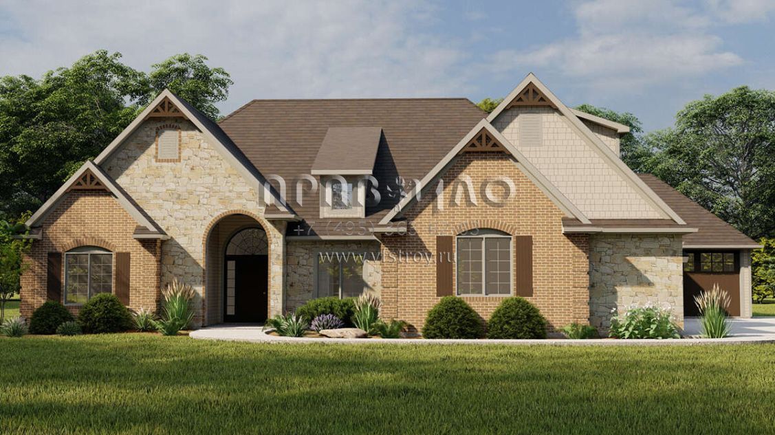 Проект двухэтажного дома с гаражом на три и более машин в стиле Ранчо S5-268 (5032-00163)