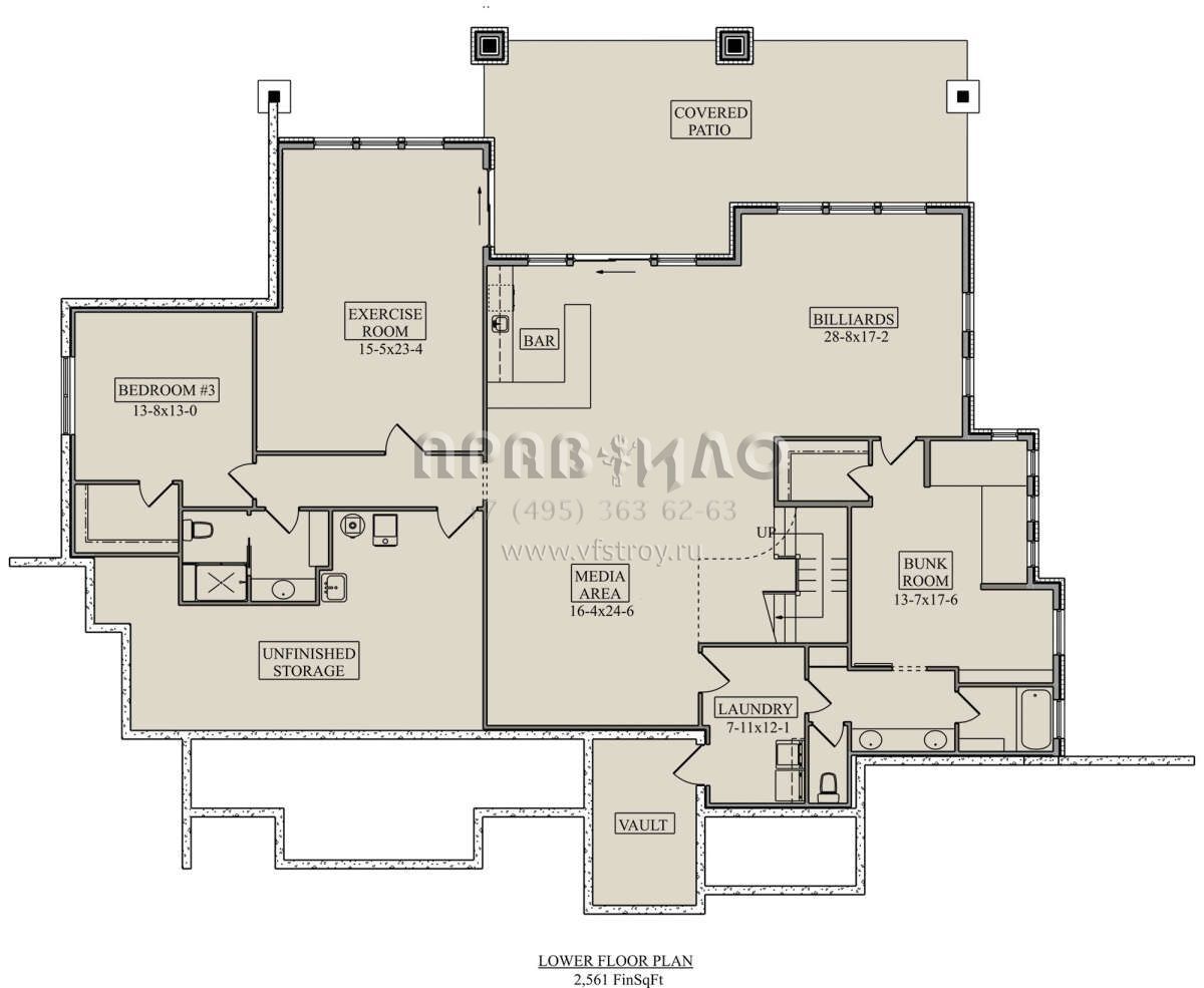 S5-268 (5631-00148) Это иностранный проект, для которого требуется адаптация под нормы, действующие в Российской Федерации. Вы видите проект дома в американском стиле. В этом доме сочетаются черты сельской постройки и аскетичность лофта. Внутри жильцы смогут проводить время с максимальным комфортом. Обратим внимание, что сейчас на планировках все размеры представлены в футах. Для перевода в метры вам необходимо значение в футах умножить на 0,3048.