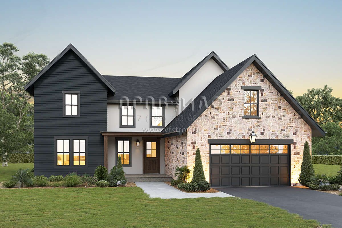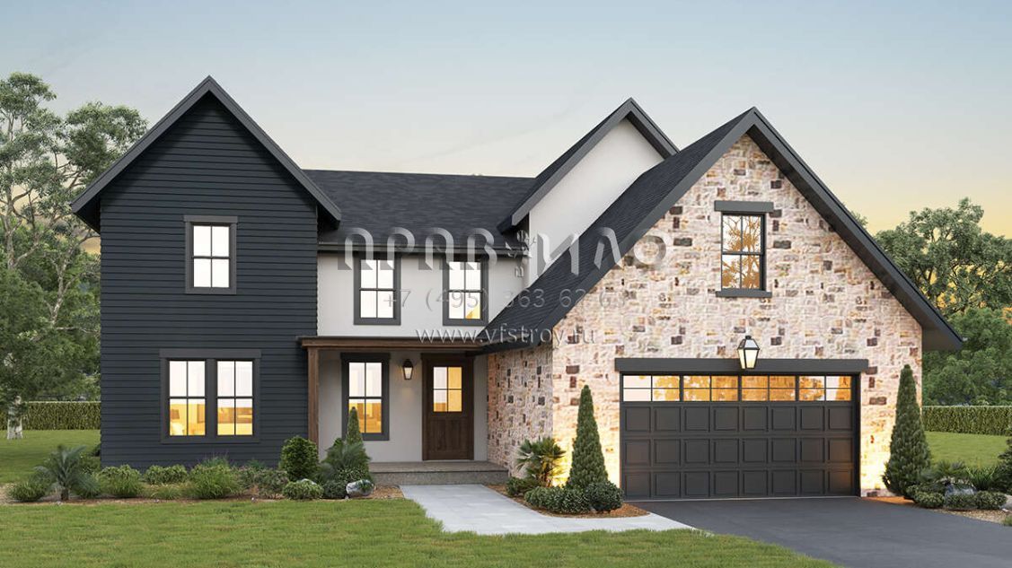 Проект двухэтажного дома с гаражом на две машины в стиле Ранчо S5-268 (5631-00171)