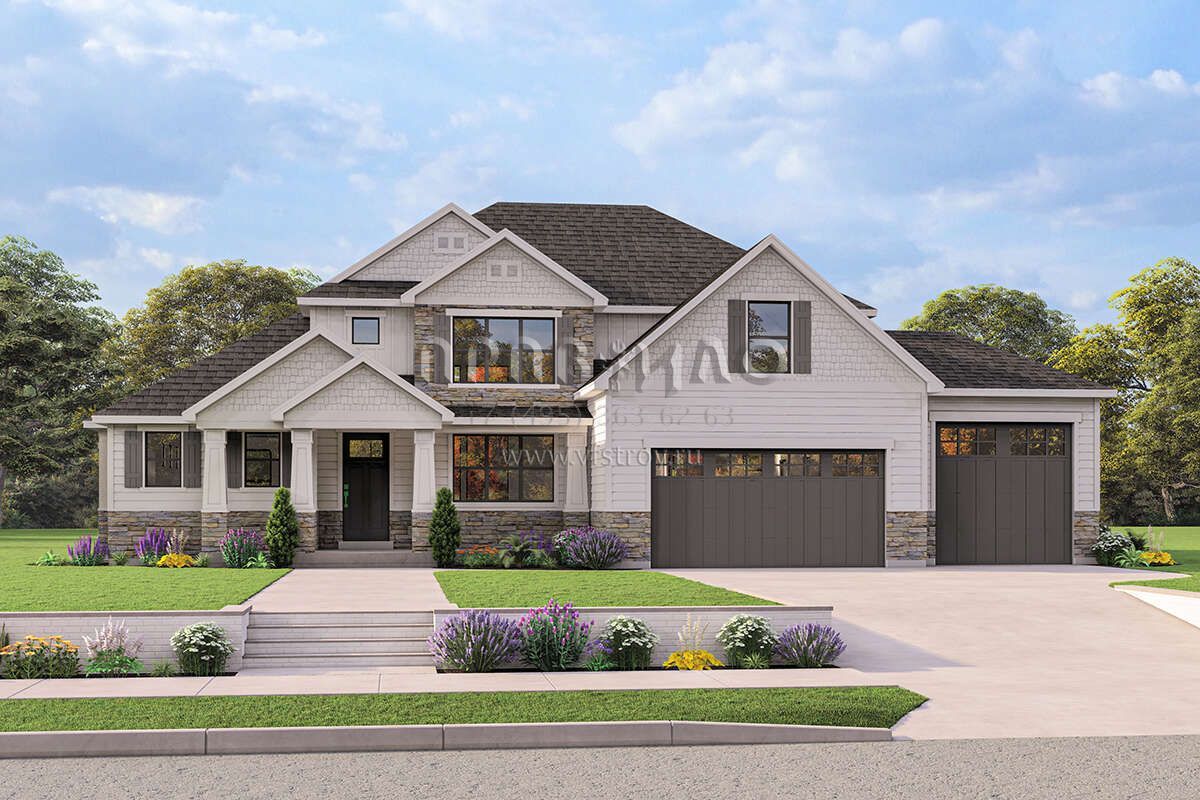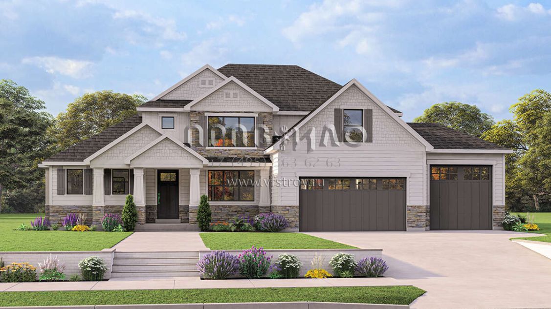 Проект двухэтажного дома с гаражом на три и более машин в американском стиле S5-268 (8768-00036)