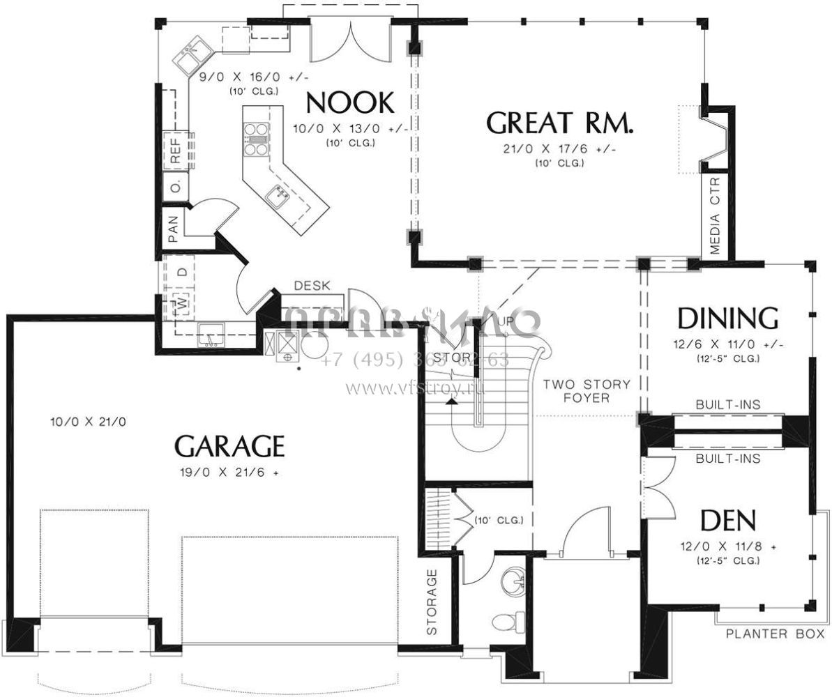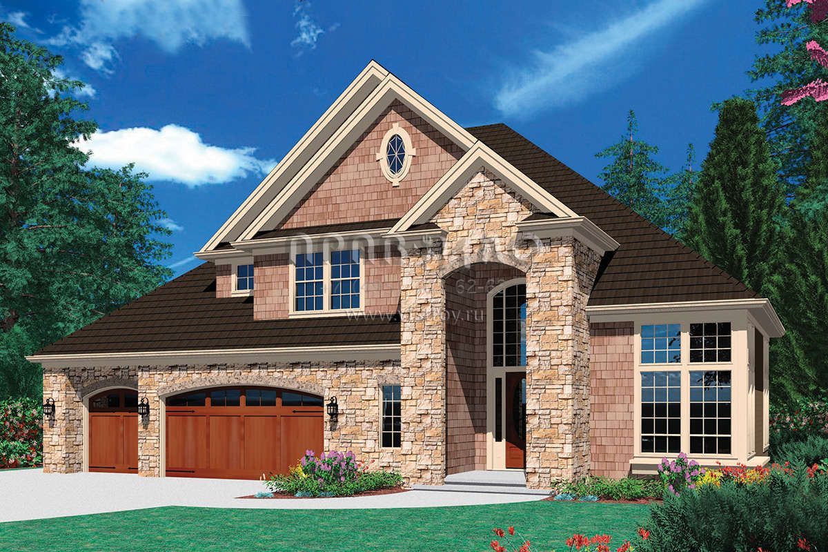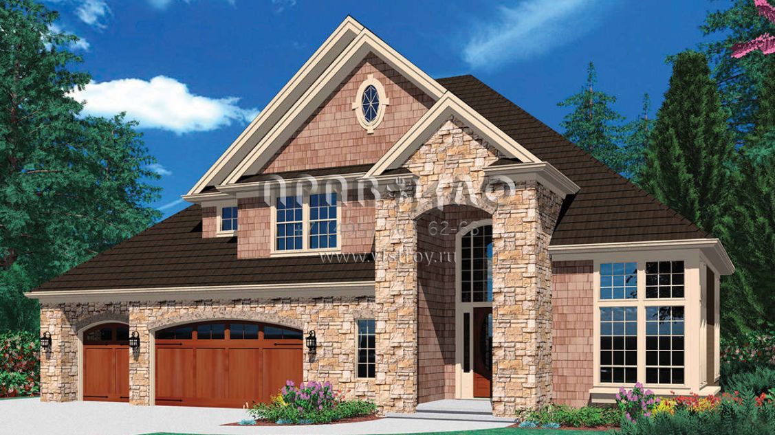 Проект двухэтажного дома с гаражом на три и более машин в стиле Ранчо S5-269 (2559-00328)