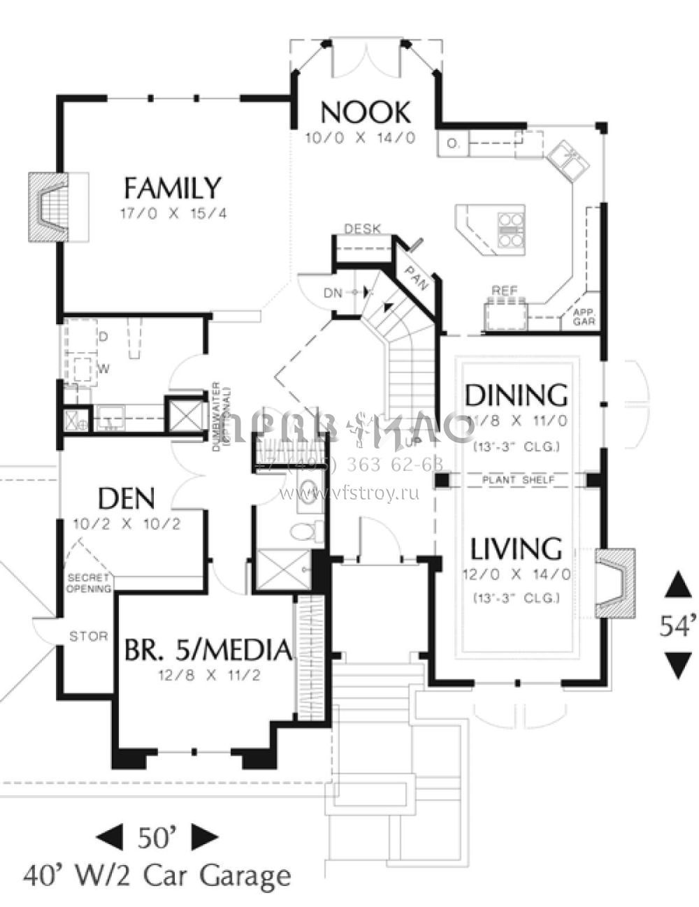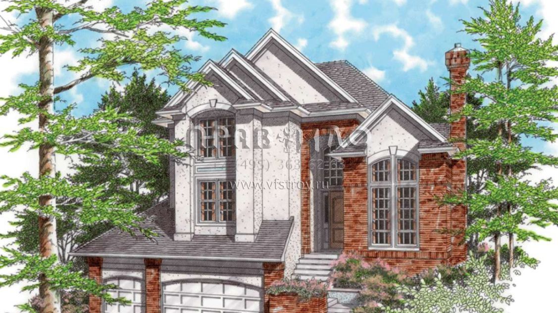 Проект двухэтажного дома с гаражом на три и более машин в стиле Ранчо S5-269 (2559-00453)