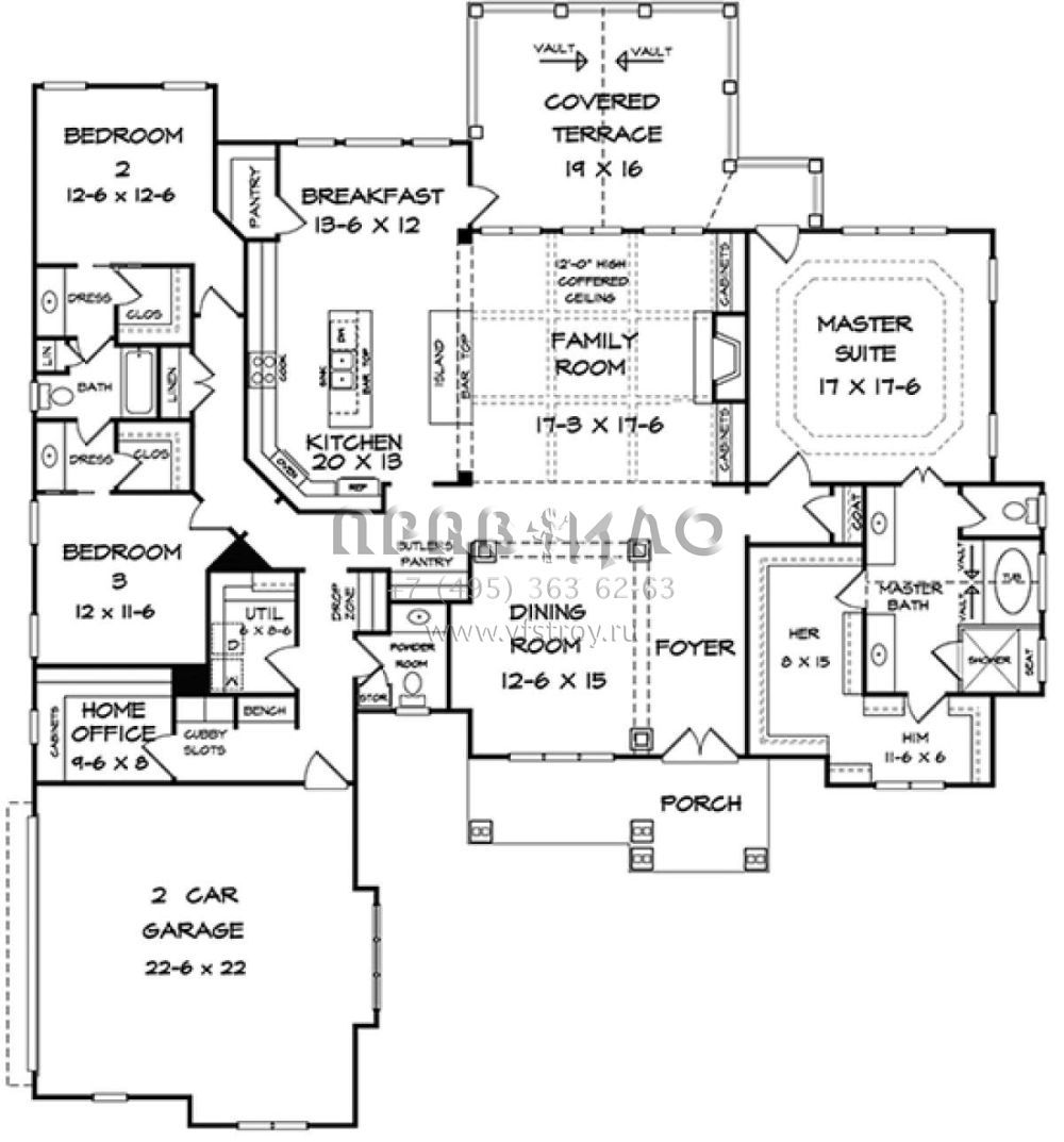 Проект одноэтажного дома с гаражом на две машины в американском стиле S5-269 (6082-00042)