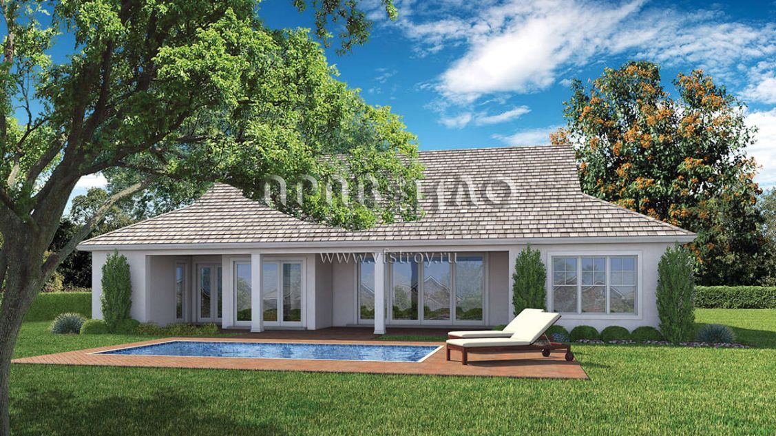 Большая площадь участка позволяет выбрать одноэтажный проект дома, особенно если в семье есть пожилые люди, инвалиды или маленькие дети.