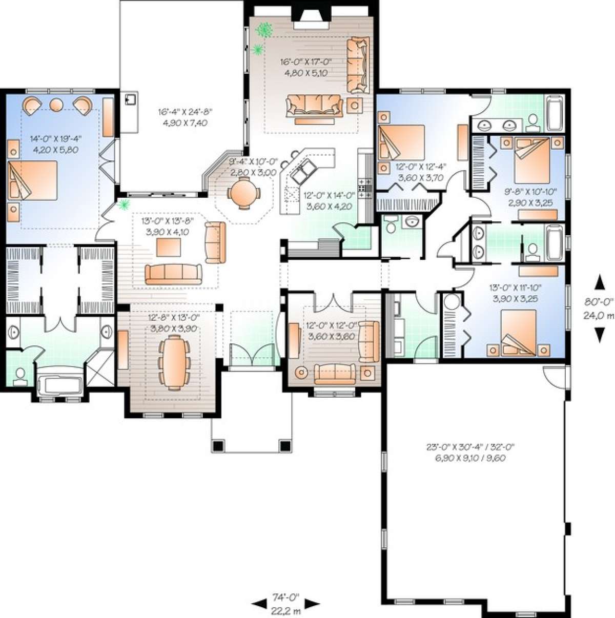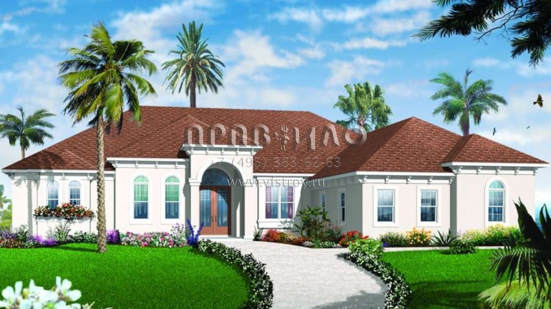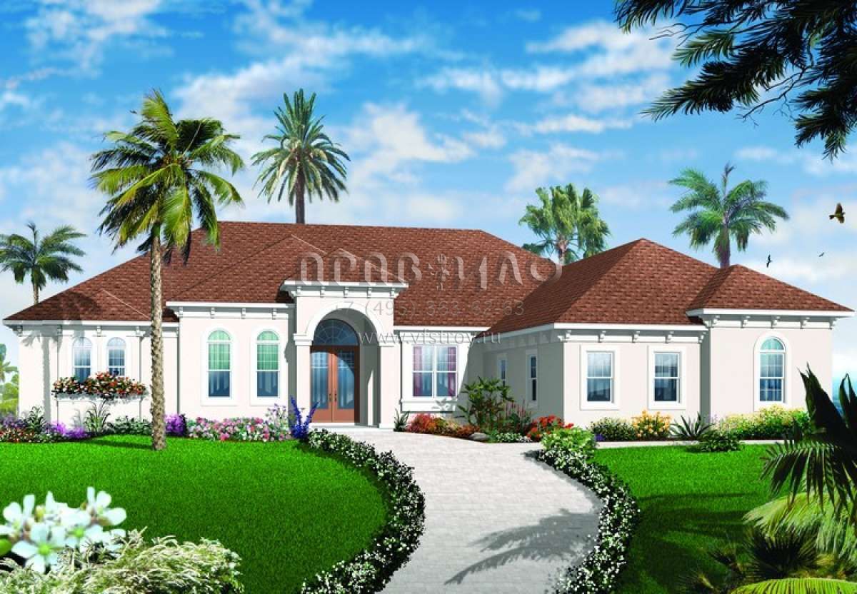 Проект одноэтажного дома с гаражом на три и более машин в прибрежном стиле S5-270 (034-00206)