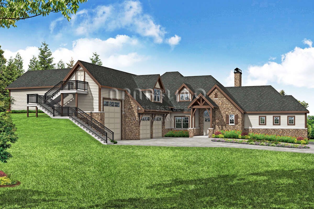 Проект двухэтажного дома с гаражом на три и более машин в американском стиле S5-270 (035-00873)