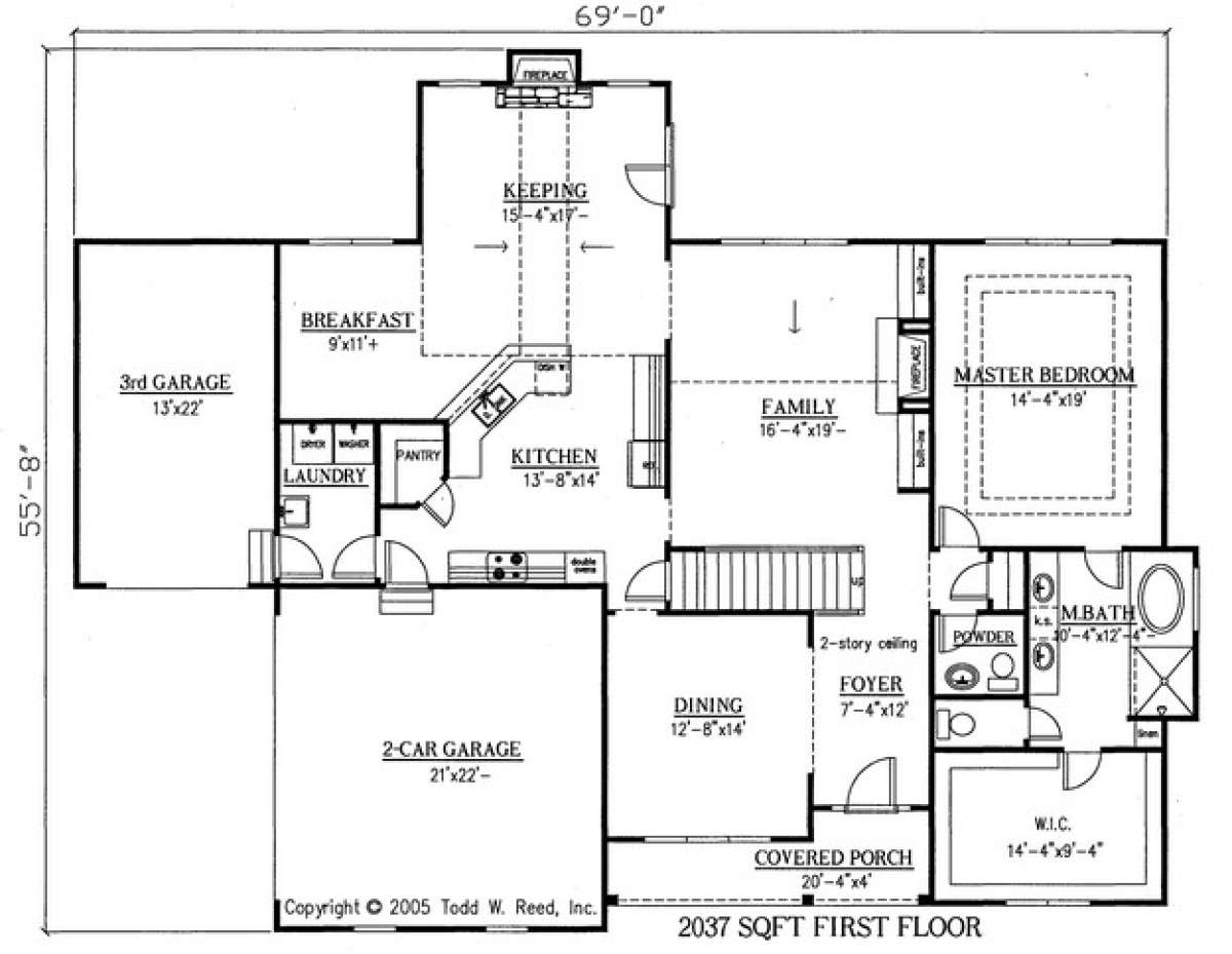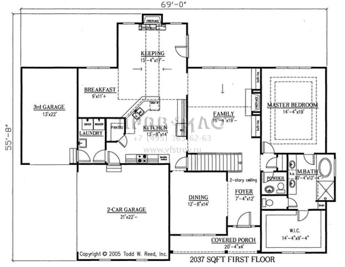 Проект двухэтажного дома с гаражом на три и более машин в стиле Ранчо S5-270 (286-00020)